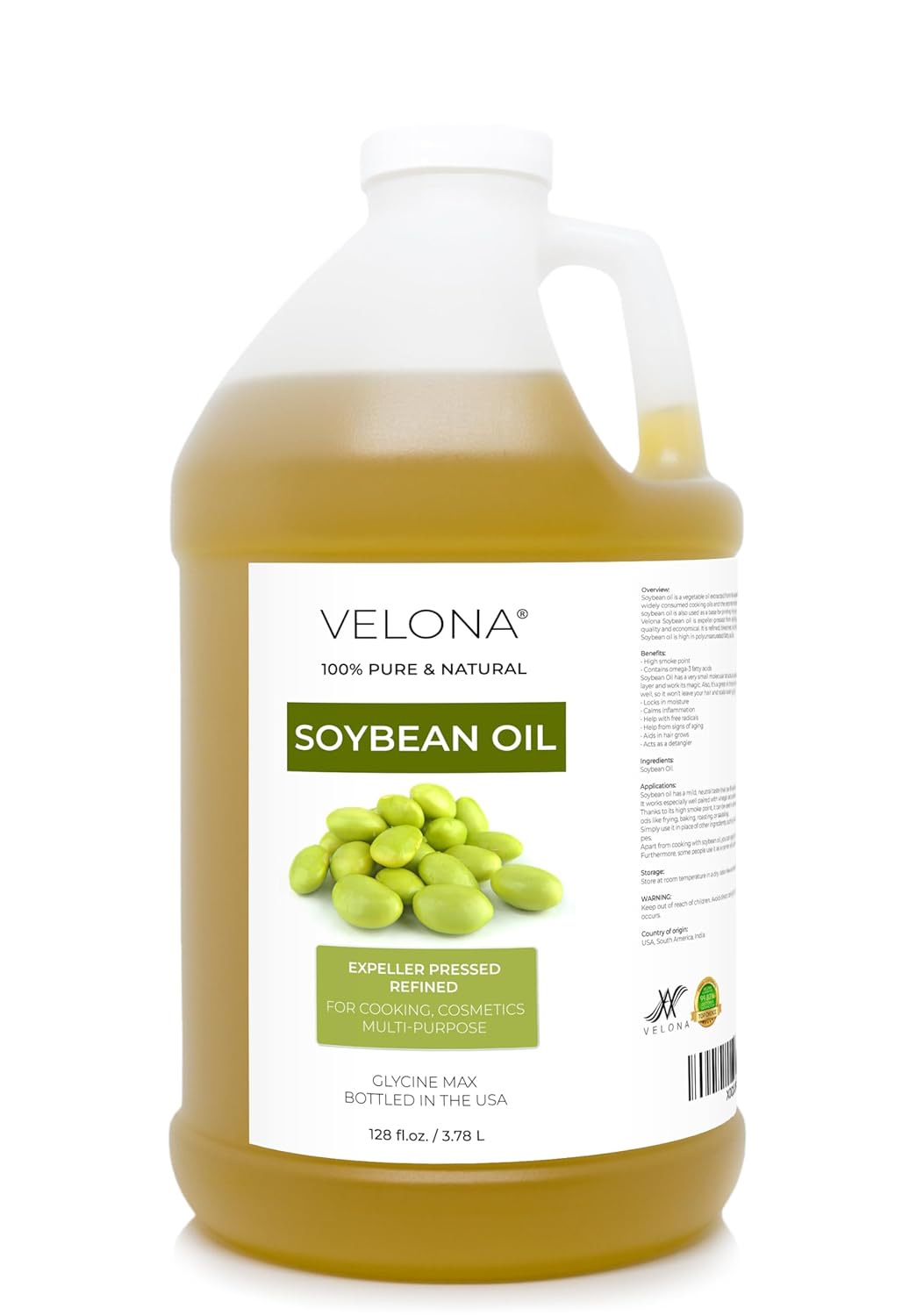 velona Soybean Oil 1 Gallon / 128 Fl Oz | 100% Pure and Natural Carrier Oil | Refined, Cold Pressed | Cooking, Skin, Hair, Body & Face Moisturizing | Use Today - Enjoy Results