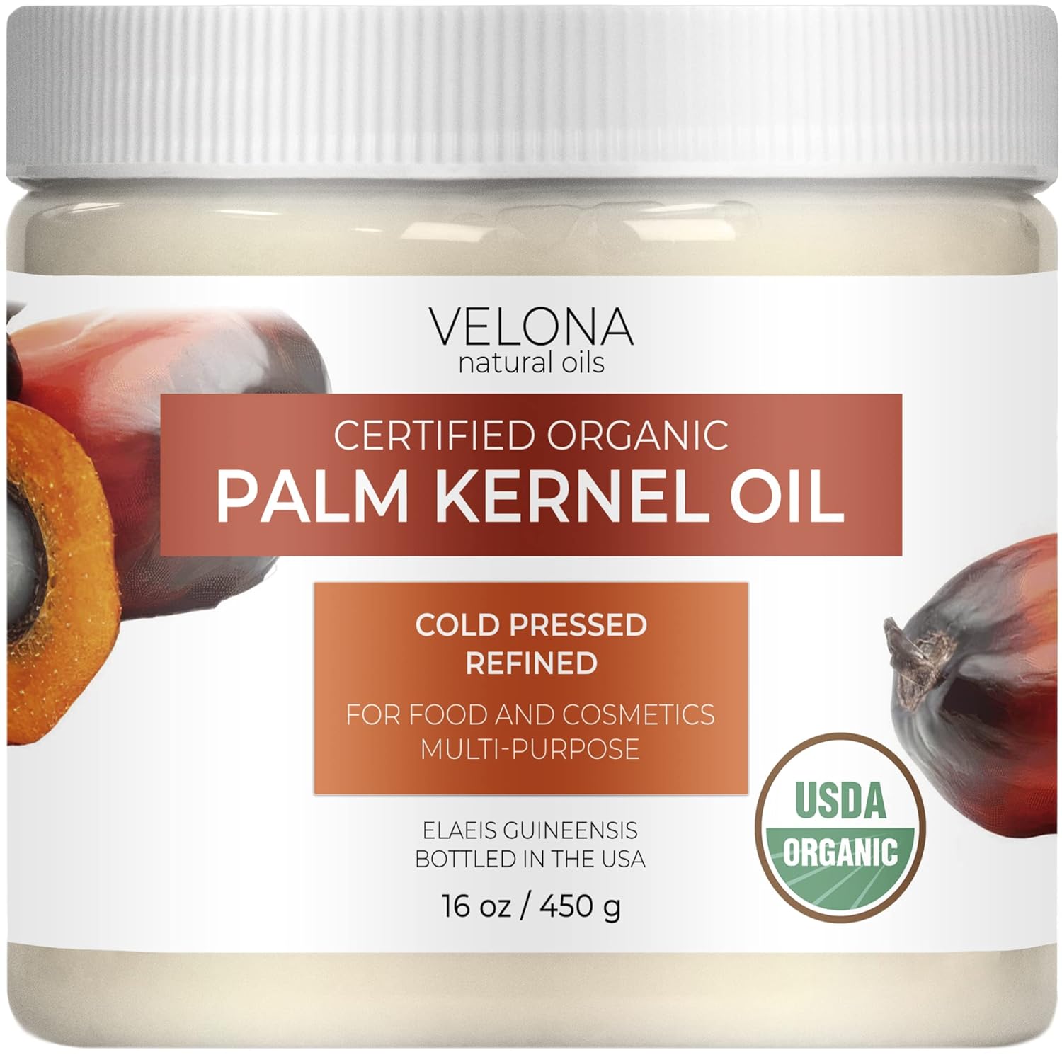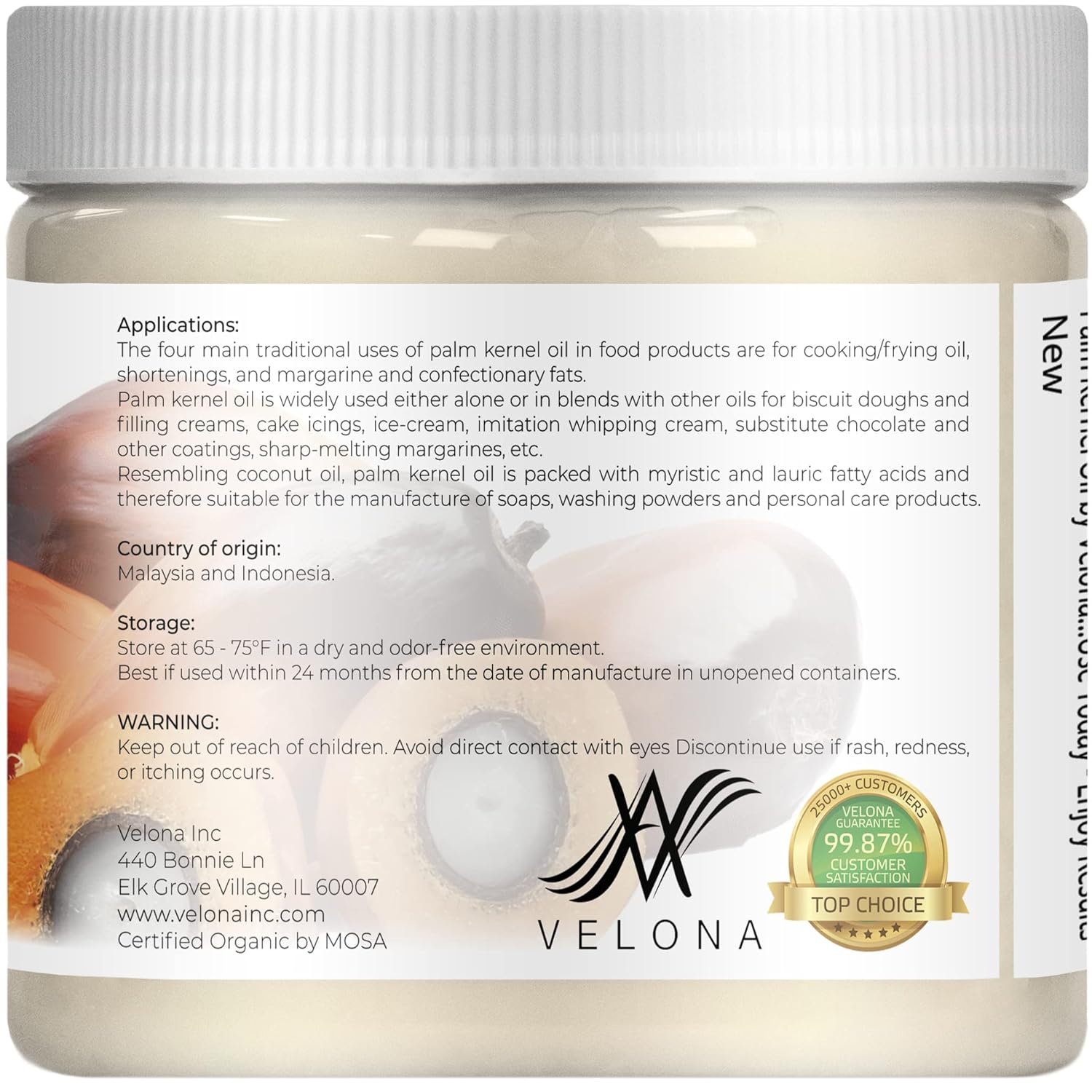 velona USDA Certified Organic Palm Kernel Oil - 16 oz | 100% Pure and Natural Carrier Oil | Refined, Cold Pressed | Face, Hair, Body & Skin Care | Use Today - Enjoy Results