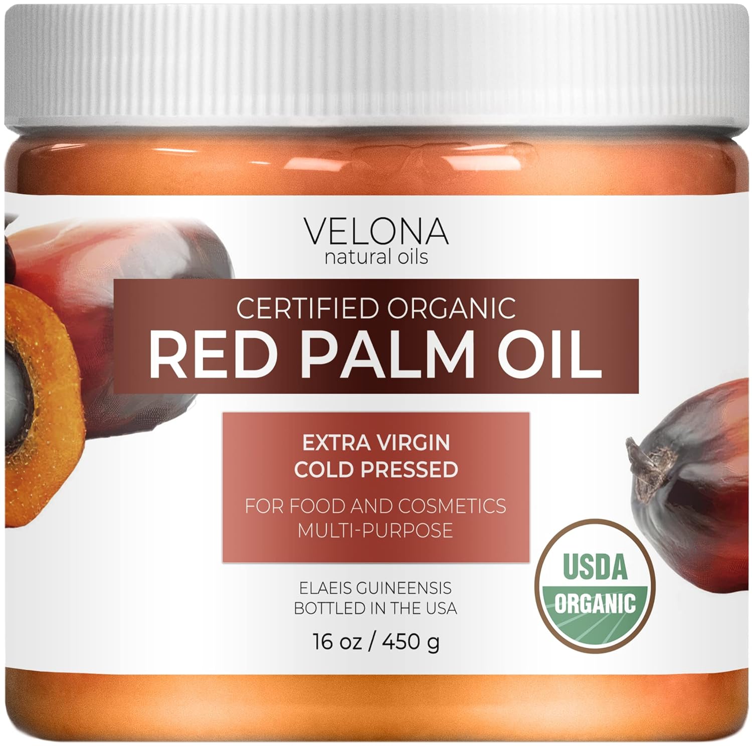 Velona USDA Organic Red Palm Oil comes from palm trees native to Africa, where it has been consumed for thousands of years. It is semi-solid at room temperature and differs from palm kernel oil in nutritional composition. Velona UDSA Organic Extra Virgin Red Palm Oil is extracted from the pulp of the tree of organic – cultivated palm tree Elaeis Guineensis, by mechanical pressing, without the use of solvents. Because of its high yield, palm oil has become a common ingredient for cooking in many parts of the world. Additionally, due to its high smoke point and heat stability, red palm oil is a good choice for dishes that are fried or sautéed. IMPORTANT! We sell our products by weight, not by volume! That is, different kind of oils might have different volume while the same bottle size and weight as they have different viscosity. Product Specifications Common Name: Red Palm Oil Botanical Name: Elaeis Guineensis Country of Origin: Brazil. Extraction Method: Cold Pressed Plant Part: Palm fruit pulp Oil Color: Dark red Flavor / Odor / Aroma: Bold, vegetal, paprika-like flavor 100% Pure & Natural Only One Ingredient: Our premium Velona USDA Organic Red Palm Oil is 100% Pure & Natural – No Additives, No Chemicals, No Alcohol, No Fragrance, and Not Diluted. Non-GMO. Made without pesticides. Frequently Asked Questions Q: Is it really 100% pure What are the ingredients Yes! there is only one ingredient: 100% Pure & Natural Velona USDA Organic Rec Palm Oil (Elaeis Guineensis). Q: Is it certified organic Yes, we're certified ORGANIC by Midwest Organic Services Association. Q: Which products contain red palm oil About 80% of the palm oil produced is used in the food industry globally. It can be found in: margarine, fats for baking, pastries, biscuits, ice cream and various other kinds of foods. Q: Why is palm oil used Palm oil has specific functional properties that make it an important ingredient in food manufacturing. Importantly, palm oil virtually contains no trans fatty acids. Q: Would it be better to stop using palm oil No, palm oil is the most efficient of the vegetable oils, meaning that you can usually produce more food from a hectare of oil palm than with any crop, and need a lot less fertiliser to do so. What are carrier oils “Carrier Oil” is a term generally used in the contexts of aromatherapy and cosmetic recipes for natural skin and hair care. Carrier oils and essential oils are made from plants. Carrier oils are used to dilute essential oils and “carry” them to your skin. That’s because essential oils are potent and can cause irritation when applied directly to your skin. A Carrier Oil is a vital aspect of an aromatherapy massage or a natural cosmetic such as a soap, bath oil, body oil, cream, lip balm, lotion, or other moisturizer, as it can affect the usefulness of the massage and the color, scent, therapeutic properties, and shelf life of the final product, respectively. Most carrier oils are unscented or lightly scented and don’t interfere with an essential oil’s therapeutic properties. They may be used alone or with other oils to nourish your skin. Cold Pressing It is a chemical-free process that involves placing the nuts or seeds in a horizontal press that has an 'expeller,' which is a rotating screw. The screw drives the nuts and seeds through a barrel-shaped hollow and compresses them until the high pressure squeezes out the oil, which seeps out through the opening, while the ‘meal,’ or the debris, remains inside the barrel. The oil is then filtered, resulting in the finished product. Due to the absence of solvent residues in Cold Pressing, the outcome is cleaner, purer oils that are higher in natural colors and scents. (function(f) {var _np=(window.P._namespace("AplusModule"));if(_np.guardFatal){_np.guardFatal(f)(_np);}else{f(_np);}}(function(P) { // register javascript with unique module id P.when("jQuery", "AplusModules-module-6", "ready").execute(function($, hoverModule) { hoverModule("aplus-module-6-3"); }); })); Benefits & Uses Zero Cholesterol This is the most important benefit provided by palm kernel oil. This makes it a perfect replacement for lard and butter in the cooking process. People with high cholesterol and heart problems can easily switch over to palm oil. Antioxidants With a sufficient amount of Vitamin E, rarely found tocotrienols and being loaded with anti-oxidants, palm oil provides amazing anti-aging benefits. It may slow the occurrence of wrinkles and fine lines. It is capable of providing protection against harmful UV rays and other toxins. Therefore, it is wise to include palm kernel oil in your daily diet. It will keep your skin great and youthful. Hair Growth Palm kernel oil shows amazing results on hair growth. It provides thorough conditioning, thickens hair and decrease hair fall by making it stronger. Used topically, it provides a soothing effect along with the desired nourishment. Naturally Soft Skin Besides the amazing anti-aging benefits provided by the palm kernel oil, it also makes the skin naturally soft and glossy without it getting a greasy appearance. This is the reason the oil is a key ingredient in many soap bars and skin creams. It also helps with ragged cuticles and itchy skin. Babassu Oil 76 Degree Refined Coconut Oil 92 Degree Refined Coconut Oil Palm Kernel Organic Neem Oil Amla Oil See Details See Details See Details See Details See Details See Details Customer Reviews .aplus-v2 .aplus-review-right-padding { padding-right: 0.1rem; } 4.5 out of 5 stars 43 .aplus-v2 .aplus-review-right-padding { padding-right: 0.1rem; } 4.4 out of 5 stars 5 .aplus-v2 .aplus-review-right-padding { padding-right: 0.1rem; } 4.6 out of 5 stars 28 .aplus-v2 .aplus-review-right-padding { padding-right: 0.1rem; } 4.1 out of 5 stars 46 .aplus-v2 .aplus-review-right-padding { padding-right: 0.1rem; } — .aplus-v2 .aplus-review-right-padding { padding-right: 0.1rem; } — Price $9.59 $ 9 . 59 — — — — — 100% Pure & Natural B