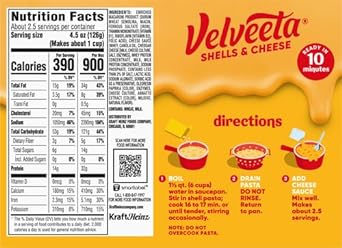 VELVEETA SHELLS & CHEESE: One 10.1 oz box of Velveeta Jumbo Original Shells & Cheese10FAMILY MEAL: Velveeta Jumbo Original Shells and Cheese is a delicious and easy to make family meal10MAC AND CHEESE BOX: Easy shells and cheese meal includes shell pasta and creamy cheese sauce10REAL CHEESE: Made with real cheese and milk10SATISFYING MEAL: Macaroni and cheese is a classic family meal for kids and adults10Velveeta Jumbo Original Shells and Cheese is a delicious and easy-to-make family meal. Kids and adults love the rich taste and creamy texture of jumbo pasta shells with cheesy goodness. This easy dinner includes shell pasta and creamy cheese sauce so you have everything you need to make a quick and tasty meal. Made with real cheese and milk with no trans fats per serving, Velveeta Jumbo Original Shells and Cheese is always great for dinner. Preparing jumbo shells is a breeze; just boil the shell shaped pasta, drain the water and add the cheese sauce. Add a little liquid gold to all your meals with Velveeta