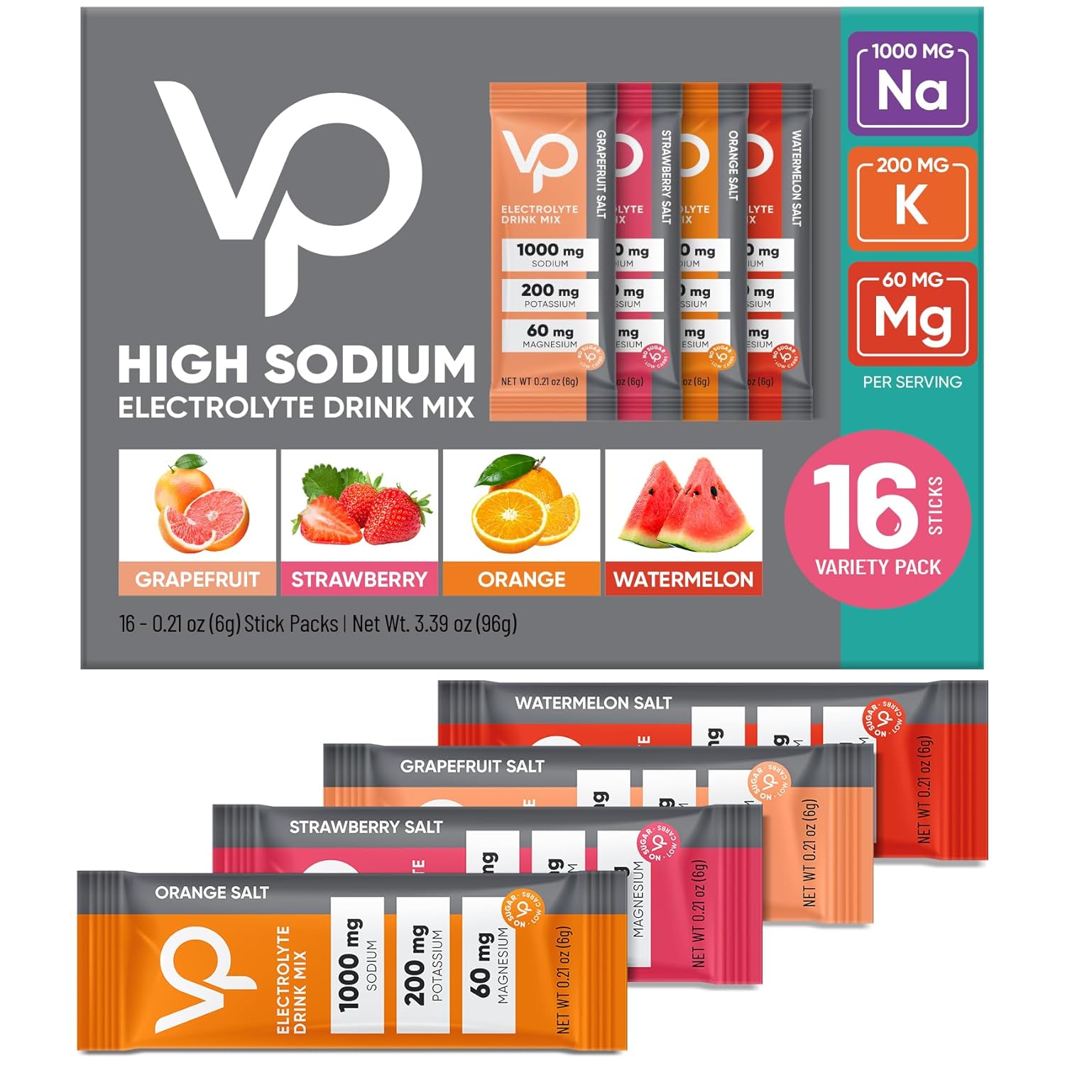 Venture Pal High Sodium Sugar Free Electrolytes Powder Packet - Hydration Packets With Sodium, Potassium & Magneisum | Zero Calories | Vegan | Keto & Paleo Friendly Electrolyte Drink Mix | 16 Stick