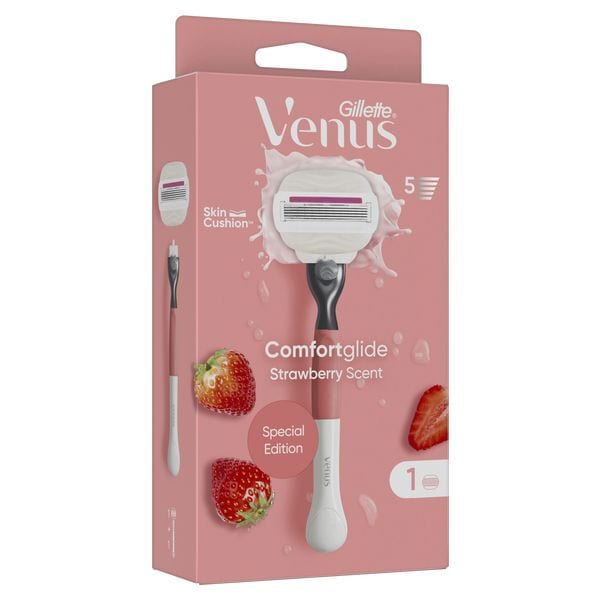 Product Information:Venus Female Razor Blades Are Designed With A WomanâS Body In Mind,Features:Venus Female Razor Blades Are Designed With A WomanâS Body In Mind. Venus V Edition Comfortglide Strawberry WomenâS Razors Have 5 Blades For A Smooth, Close Shave That Lasts. The Razor Blade Refills Come Equipped With Lush Moisture Bars With A Light Strawberry Fragrance And Lock In Moisture To Keep Skin Dryness In Check. With A Pivoting Design That Adjusts To Your BodyâS Contours. Any Venus Blade Refill Fits Any Venus Razor Handle (Except Simply Venus And Venus Pubic Hair And Skin),Benefit:- Lasting Smooth: The Razor Has 5 Blades For A Smooth, Close Shave That Lasts - Less Dryness: The Razor'S Lush Moisture Bars Have A Light Strawberry Fragrance And Lock In Moisture To Keep Skin Dryness In Check. Soft, Silky Skin For Days - Premium Edition Handle - Adaptive Design: Pivoting Head Design That Adjusts To Your Body'S Contours. No Awkwardly Angling Your Razor - Skin Protection: The Razor'S Moisture Bars Release A Rich Body Butter Lather, Guarding Your Skin Against Nicks, Cuts And Irritation. Brings Seamless Glide To Every Stroke - Any Venus Blade Refill Fits Any Venus Razor Handle (Except Simply Venus And Venus Pubic Hair And Skin),Product Specification:Lubrastrip: Peg-115M; Peg-7M; Peg-100; Silica; Tocopheryl Acetate; Pentaerythrityl Tetra-Di-T-Butyl Hydroxyhydrocinnamate; Tris(Di-T-Butyl)Phosphite; Bht, Gel Bar: Sodium Stearate; Propylene Glycol; Glycerin; Aqua; Sorbitol; Sodium Laureth Sulfate; Petrolatum; Polybutene; Sodium Myristate; Lauric Acid; Garcinia Indica Seed Butter; Peg-45M; Peg-90M; Parfum; Peg-7M; Stearic Acid; Myristic Acid; Sodium Chloride; Polyquaternium-10; Silica; Hexyl Cinnamal; Tetrasodium Etidronate; Tetrasodium Edta; Amyl Cinnamal; Bht; Sodium Acetate; Isopropyl Alcohol