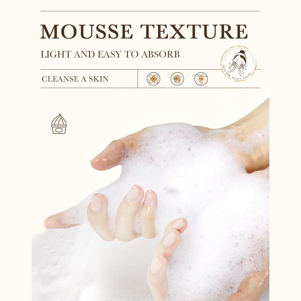 Venzen Rice Raw Pulp Clean Foam Mousse Soft Brush Head Deep Face Clean Exfoliation Facial Moisturizing Skin Care 120Ml / 4.06Fl.Oz