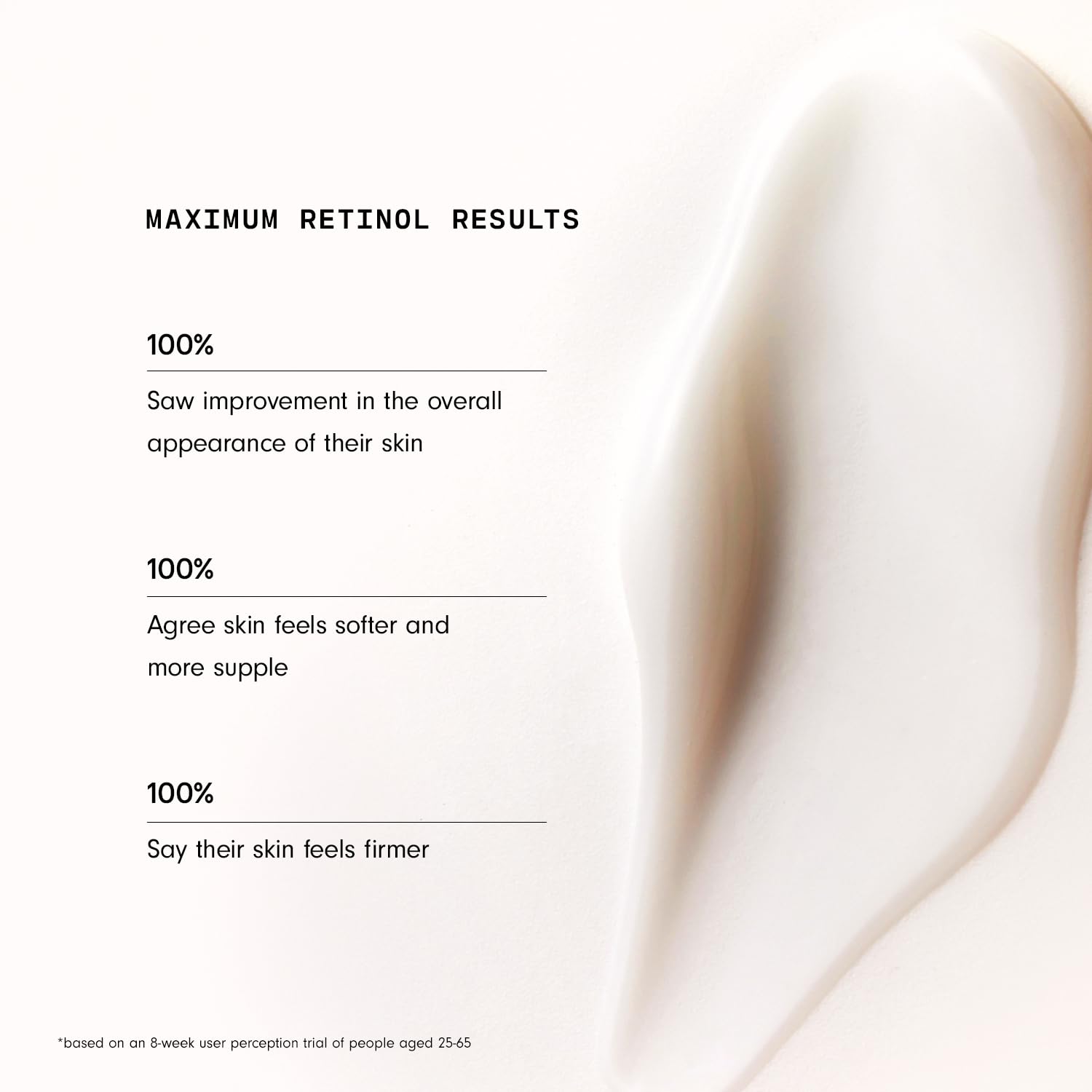 Real Skin, Real Results - Based On An Eight-Week Trial Of People Aged 25-65, 100% Saw Improvement In The Overall Appearance Of Their Skin, 100% Agree Skin Feels Softer And More Supple, And 94% Say Their Skin Feels Firmer, All Thanks To Our Retinol Body Cream