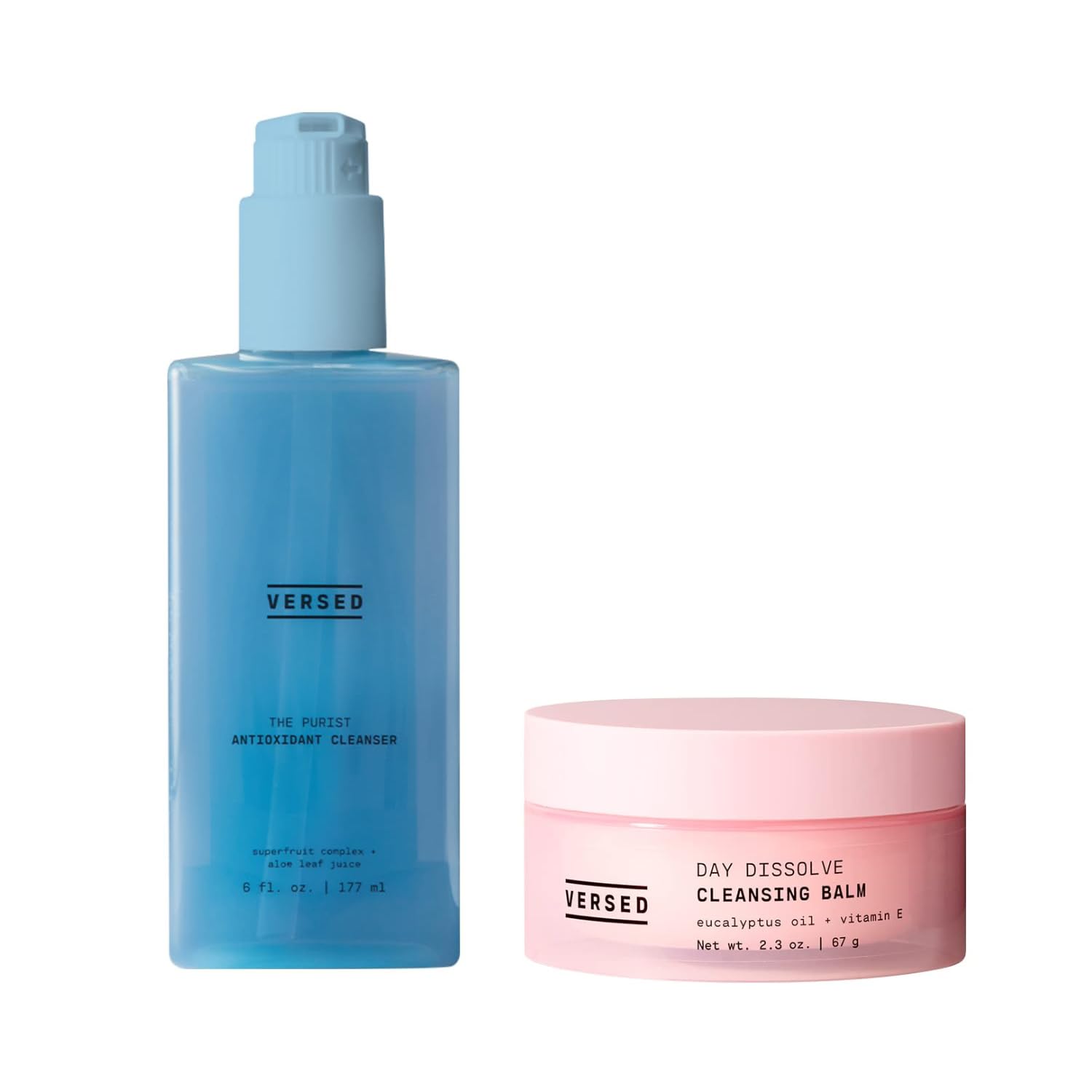 Versed Double Cleanse Duo The Purist Antioxidant Gentle Face Cleanser (6 fl oz) & Day Dissolve Cleansing Balm (2.3 oz) - Daily Gel Cleanser and Makeup Remover for All Skin Types - Vegan