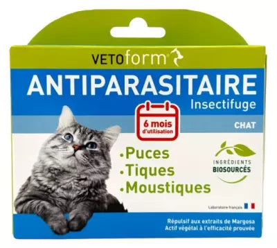 Vetoform Antiparasitic Insect Repellent Cat 6 Pipettes Of 1Ml Is A Repellent In The Form Of Pipettes Containing Extracts Of Margosa And Pyrethrum, The Extracts Of Which Are Known For Their Insect Repellent Properties. They Repel Biting Insects Such As Fleas, Ticks And Mosquitoes. Biocide Classification: Repellent Tp19