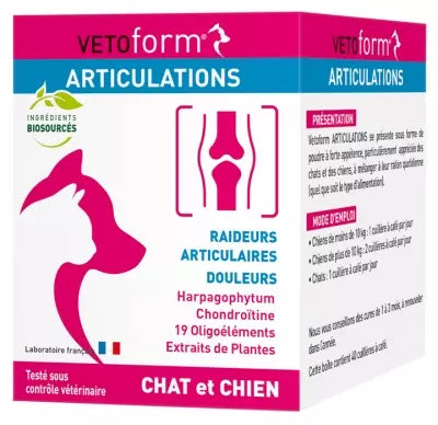 Vetoform Joint Dog And Cat 100G Is A Food Supplement Which Comes In The Form Of Powder With Strong Palatability, Particularly Appreciated By Cats And Dogs, To Mix With Their Daily Ration (Whatever The Type Of Food). This Food Supplement Relieves Your Cat And Your Dog Thanks To The Presence Of Anti