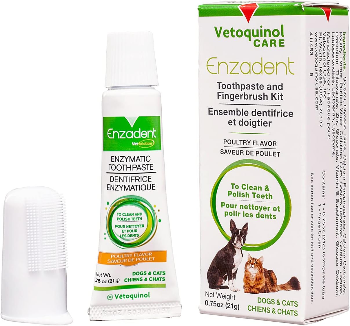 Vetoquinol Enzadent Enzymatic Toothpaste Kit + Fingerbrush For Cats & Dogs – .75Oz, Poultry Flavor – Oral Dental Care Kit: Removes Plaque, Polishes Teeth & Freshens Breath