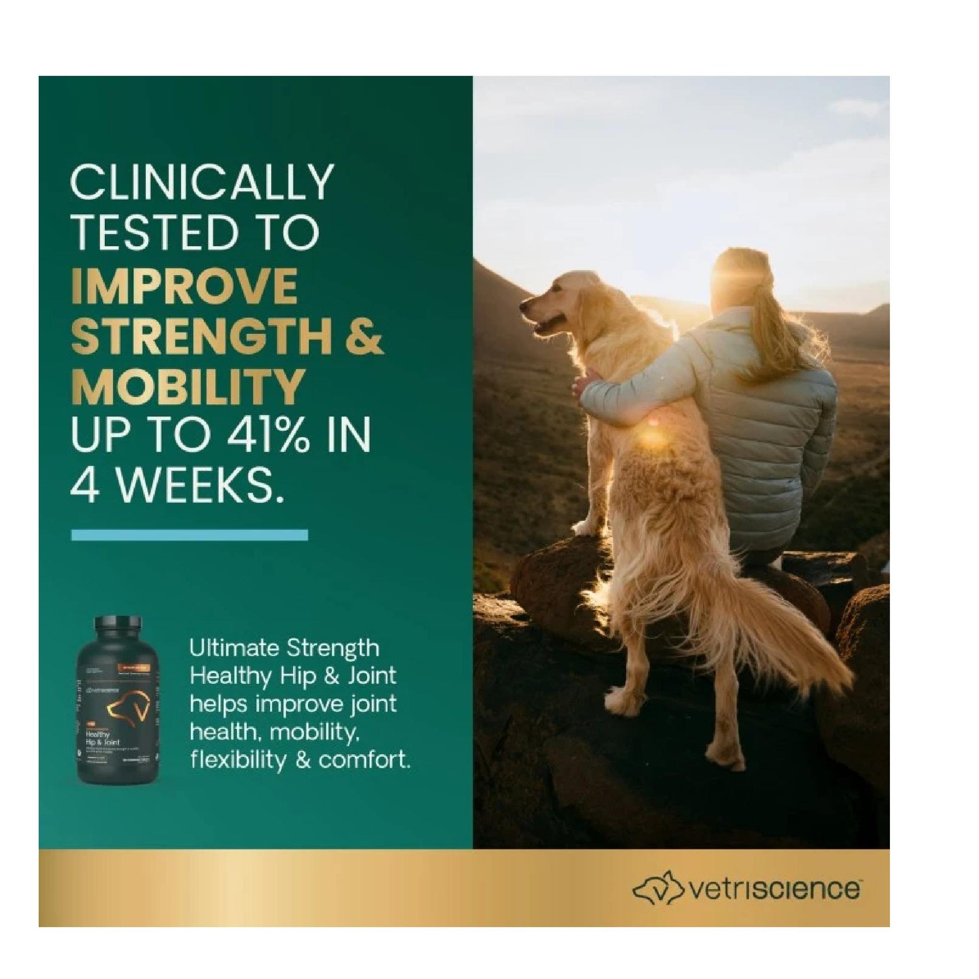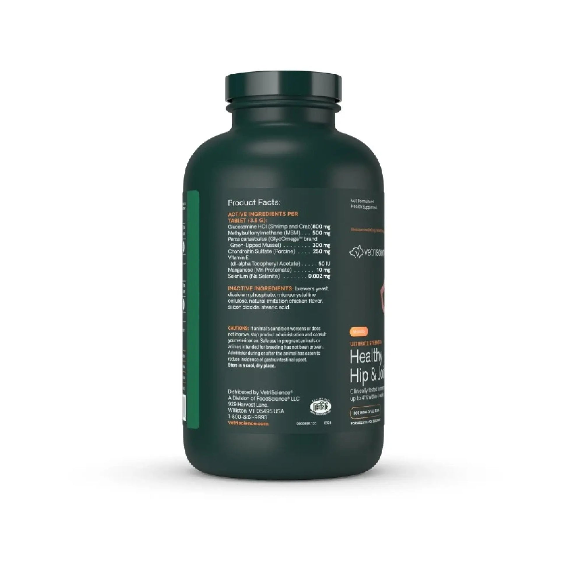 Clinically proven hip and joint support supplement for dogs: From the veterinarian-formulated brand comes the only dog joint supplement clinically proven to increase hind leg strength in just 4 weeks*10Maximum strength joint health formula: Our GlycoFlex Plus canine formula combines green lipped mussel, glucosamine for dogs, chondroitin, MSM, DMG, and antioxidants to help cushion joints, promote cartilage building and alleviate discomfort10Dog hip and joint supplement: This dog supplement comes in delicious natural imitation roast chicken flavored chewable tablets and is recommended by vets to support joints and connective tissue in medium to large working, competitive and senior dogs10High-quality ingredients: Our dog and cat supplements are certified by the National Animal Supplement Council (NASC), routinely undergo third-party testing and contain no hidden ingredients, artificial flavors, synthetic colors or preservatives10Veterinarian-formulated and approved: Formulated with the expertise of scientists and veterinarians, and trusted by over 15,000 veterinary clinics in the U.S., VetriScience only makes supplements that vets feel confident giving to their own pets