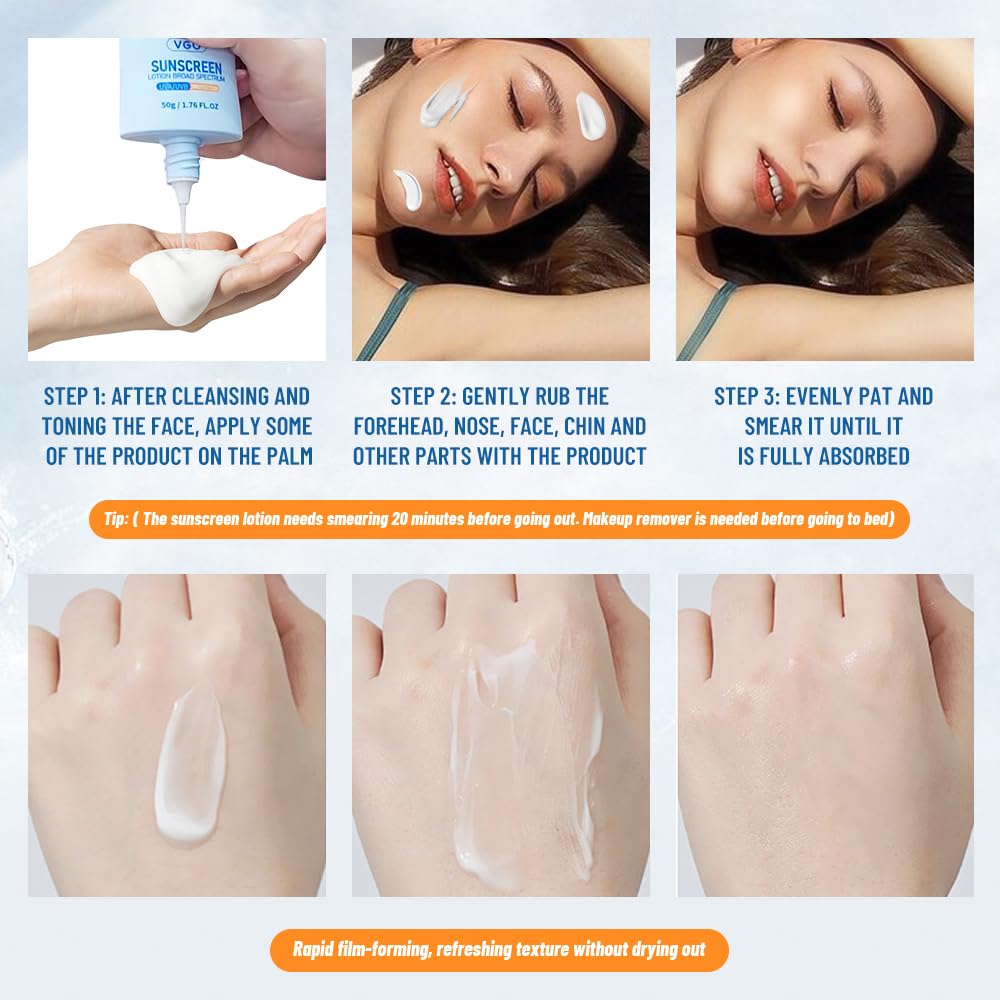 Vgo Sunscreen For Face Spf 50, Hydrating Sun Essence Facial Sunscreen Leaves No Sticky Feeling Travel Size Sunscreen Against Uva And Uvb Rays, Oil Free Sunscreen Lotion, 1.76 Oz