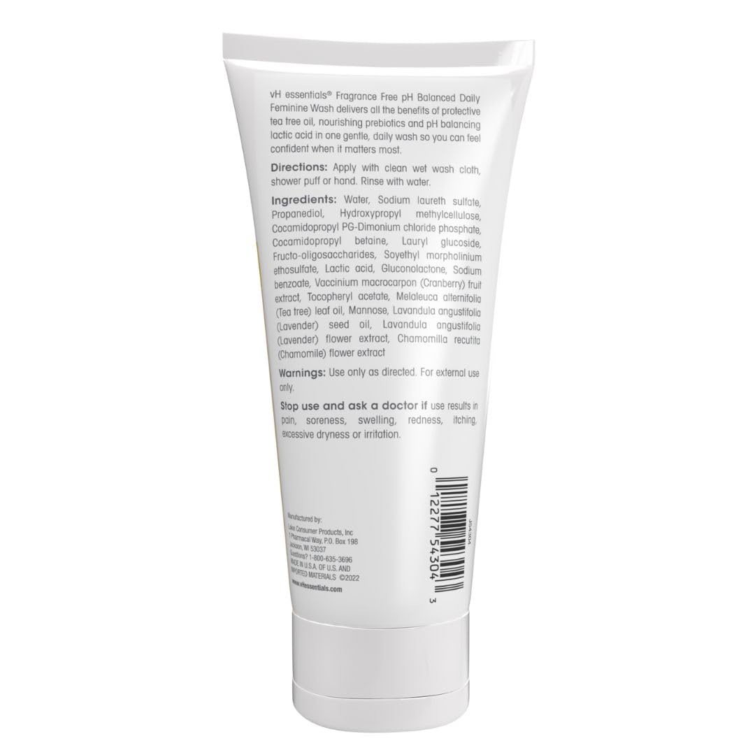 About this item Balance pH: vH essentials Daily Feminine Wash supports vaginal health by balancing pH levels and cleansing sensitive skin. Prebiotic Support: Prebiotics in the formula help support healthy vaginal flora, neutralizing odor and combating feminine odor. Natural Ingredients: Formulated with tea tree oil, prebiotics, natural botanical extracts and vitamins; free of parabens, gluten, artificial colors/dyes and animal byproducts. Intimate Hygiene: This daily cleanser soothes and helps fight intimate odor; can be used for all-over body care to keep you feeling clean and balanced. Wellbeing and Confidence: Infused with natural botanical extracts and vitamins, vH essentials Daily Feminine Wash helps restore wellbeing and confidence. › See more product details,Balance pH: vH essentials Daily Feminine Wash supports vaginal health by balancing pH levels and cleansing sensitive skin,Prebiotic Support: Prebiotics in the formula help support healthy vaginal flora, neutralizing odor and combating feminine odor,Natural Ingredients: Formulated with tea tree oil, prebiotics, natural botanical extracts and vitamins; free of parabens, gluten, artificial colors/dyes and animal byproducts,Intimate Hygiene: This daily cleanser soothes and helps fight intimate odor; can be used for all-over body care to keep you feeling clean and balanced,Wellbeing and Confidence: Infused with natural botanical extracts and vitamins, vH essentials Daily Feminine Wash helps restore wellbeing and confidence