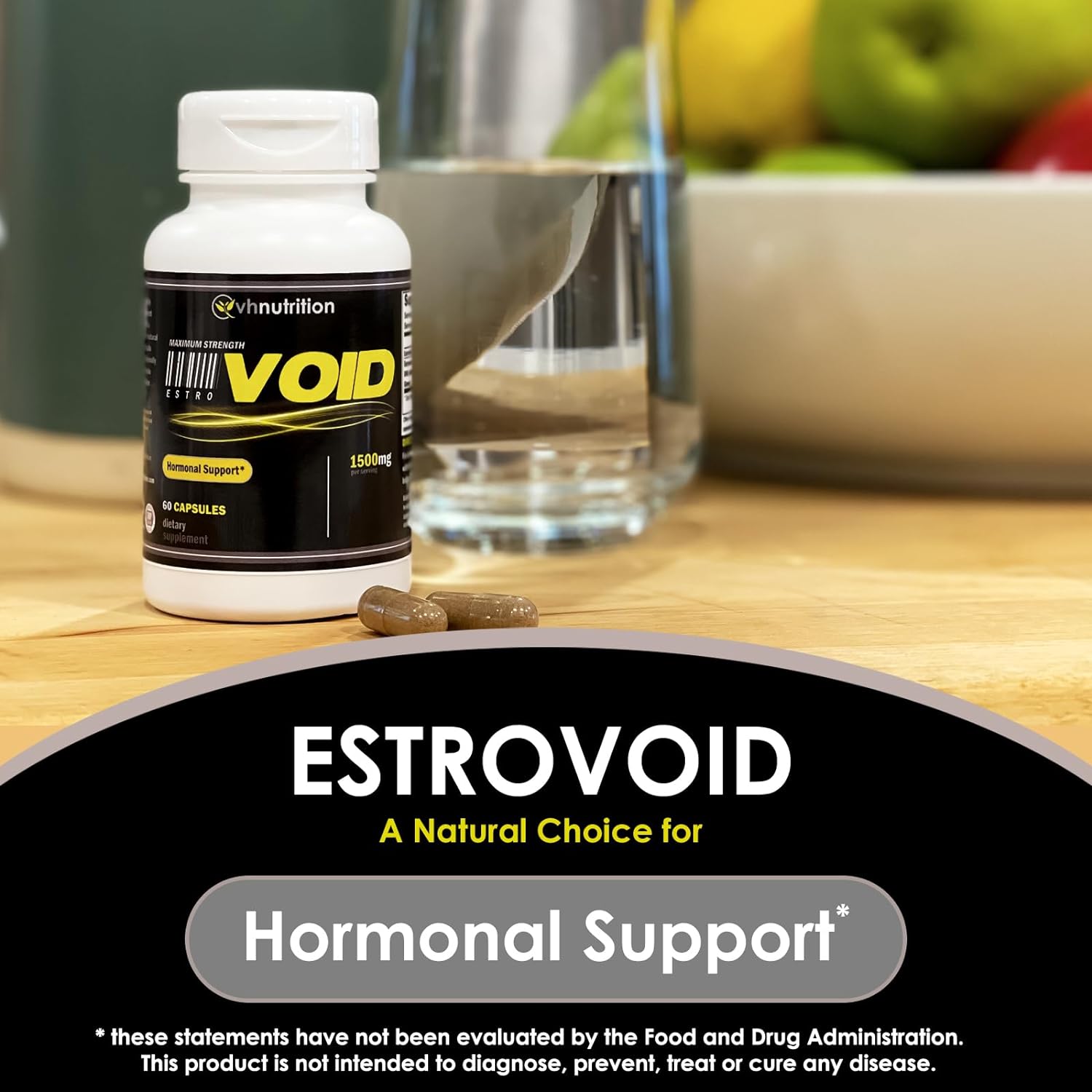 VH Nutrition's EstroVoid is an herbal formulation containing naturally occuring compounds which may provide hormonal support*. Each serving contains 1450mg of our proprietary herbal blendThe herbal ingredients in EstroVoid have been traditionally used to support hormone balance in menAdults take 1 serving with fluid twice dailyEstroVoid's proprietary formula contains: DIM, Longjack, Ashwagandha, Eleuthero, Cordyceps, Rhodiola, and Panax GinsengThese statements have not been evaluated by the Food and Drug Administration. This product is not intended to diagnose, treat, cure, or prevent any disease