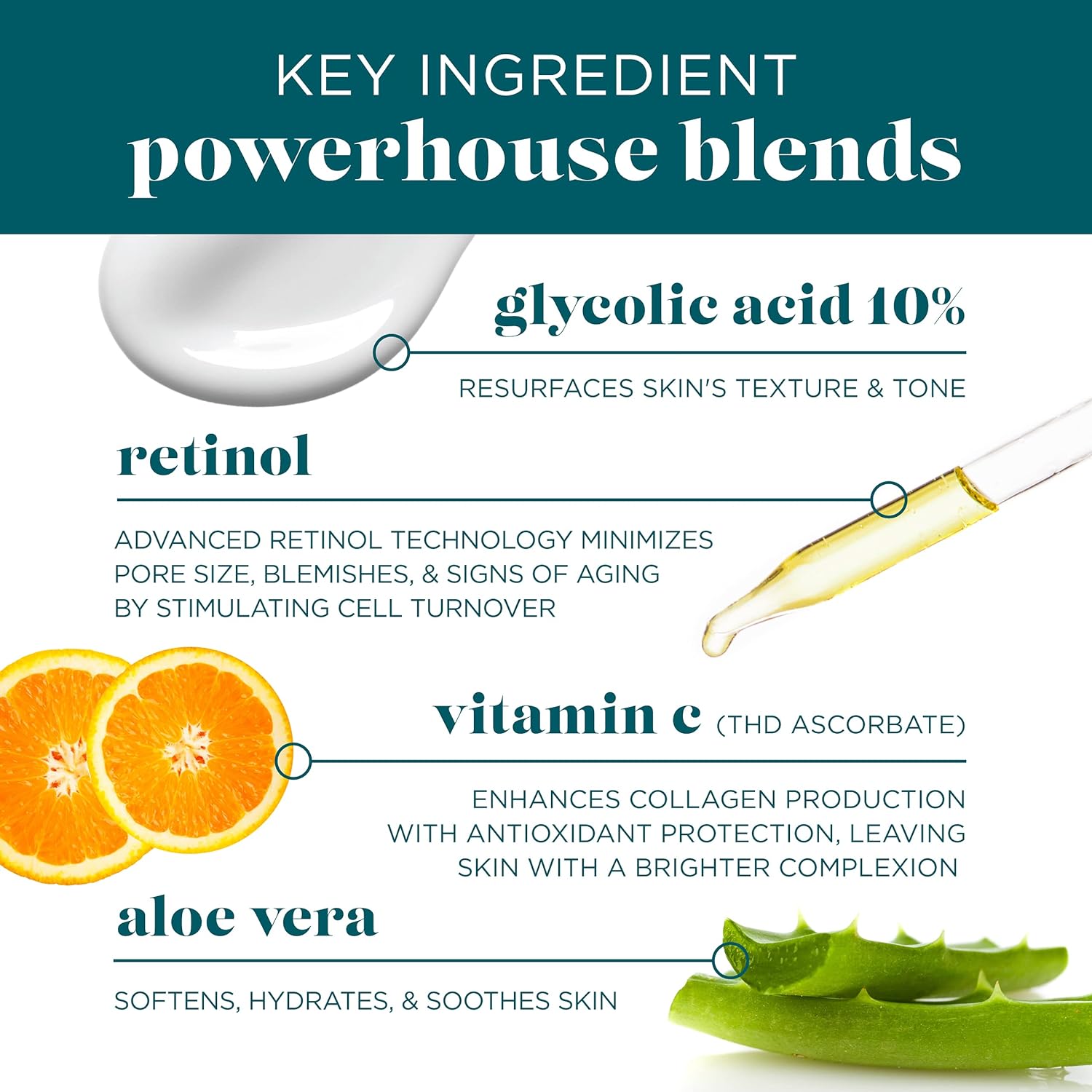 GLYCOLIC ACID 10%: Resurfaces skin's texture and tone Retinol Stimulates cell turnover to help minimize signs of aging, visibly reduce pore size, and clear away dead skin cells that can lead to breakouts THD Ascorbate (Vitamin C) A stable and more efficacious form of Vitamin C that enhances collagen production, defends against free radical damage, and brightens for a more radiant complexionVI DERM Age-Defying Treatment Moisturizer, With Retinol, Vitamin C, and Green Tea, Enhances Collagen Production, 1.7 Fl Oz / 50 mL
