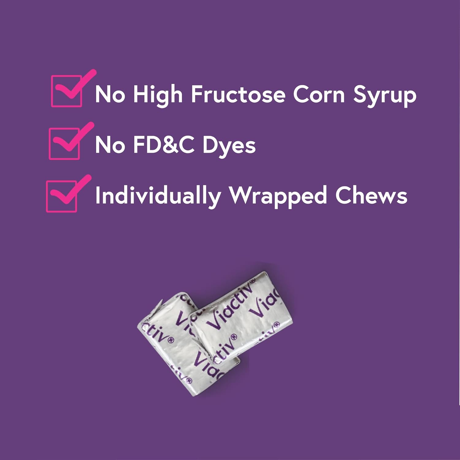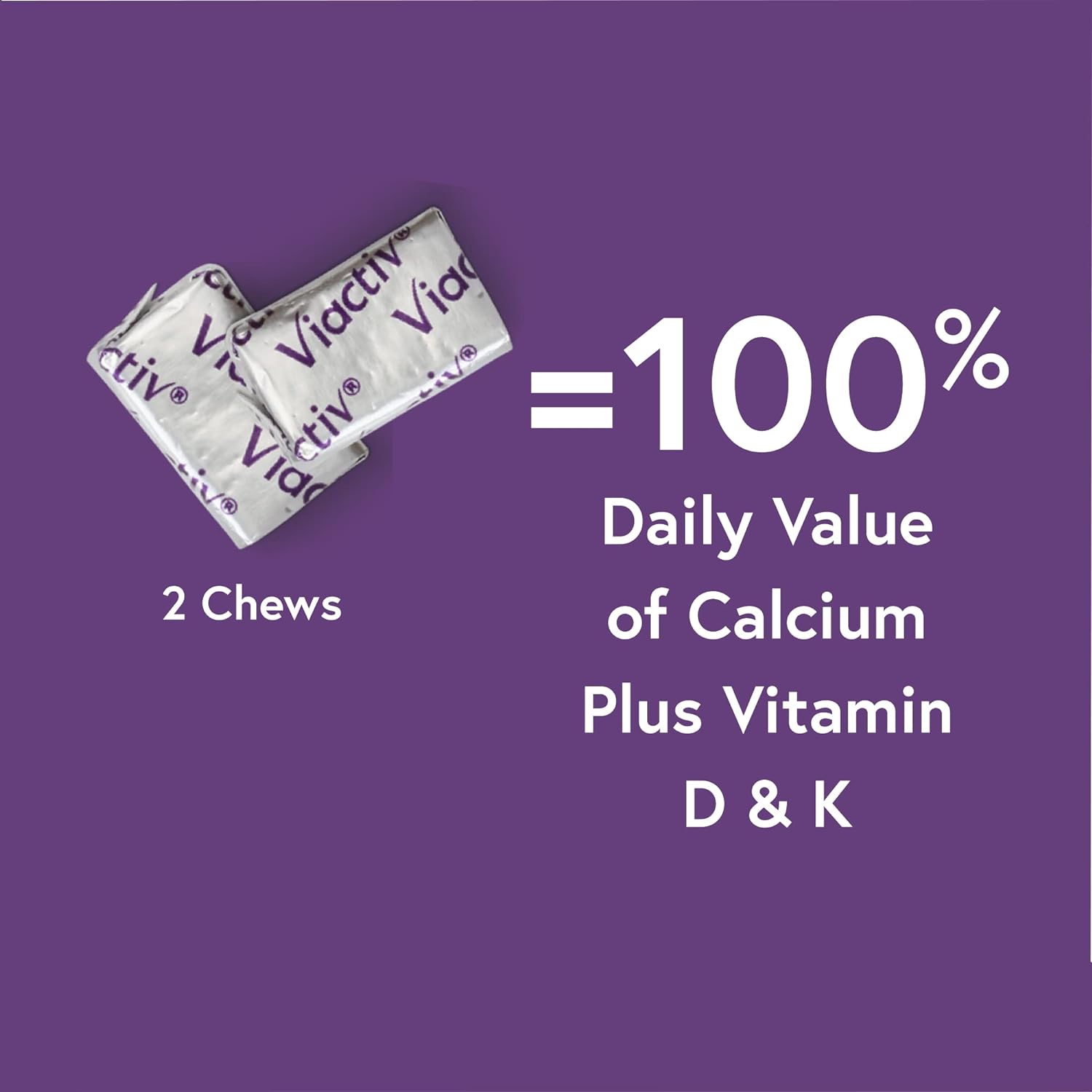 Calcium and Vitamin D Supplement Chews: Two Viactiv chews a day provides 100 percent of your daily recommended Calcium plus Vitamin D and Vitamin K, with less sugar vs. leading gummy