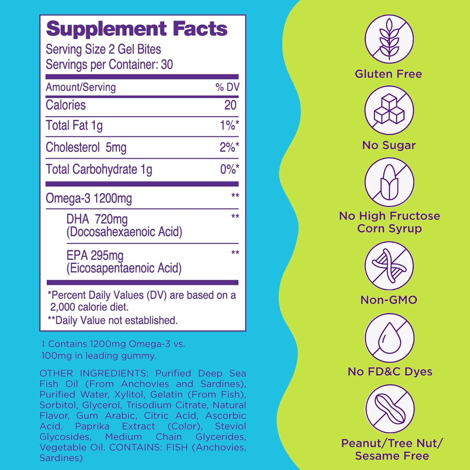 3 >10x More Omega-3 Fatty Acids EPA & DHA: Our gel bites have the great taste you'd expect from a gummy, but contain 1,200mg of Omega-3s while the leading gummy only contains 100mg