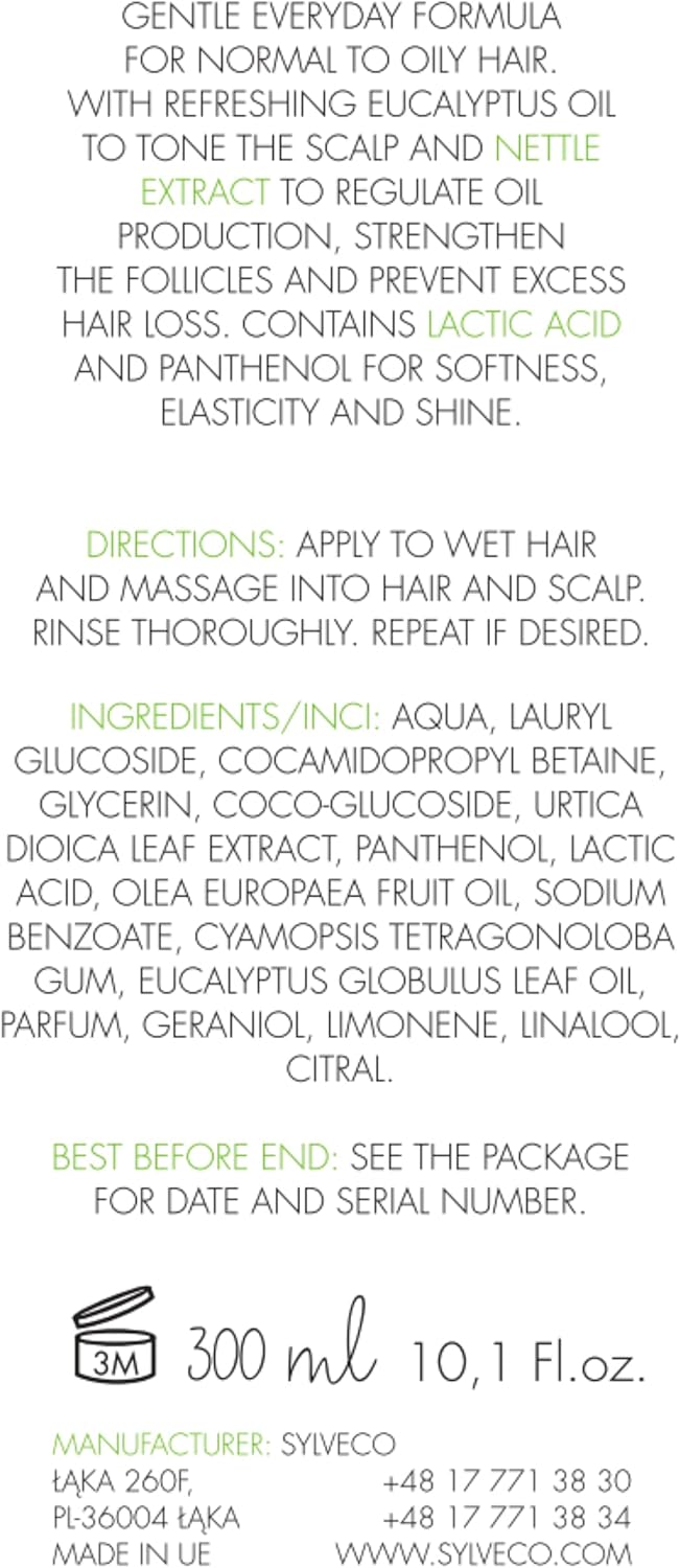 Eucalyptus oil refreshes and tightens the scalp, panthenol and lactic acid moisturise