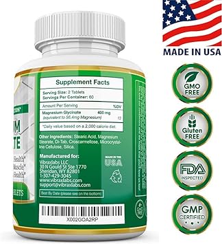 VibraxLabs Magnesium Glycinate Supplement, 400mg, for Men & Women, for Stress, Energy, Muscle Cramps, Joint Support, Che