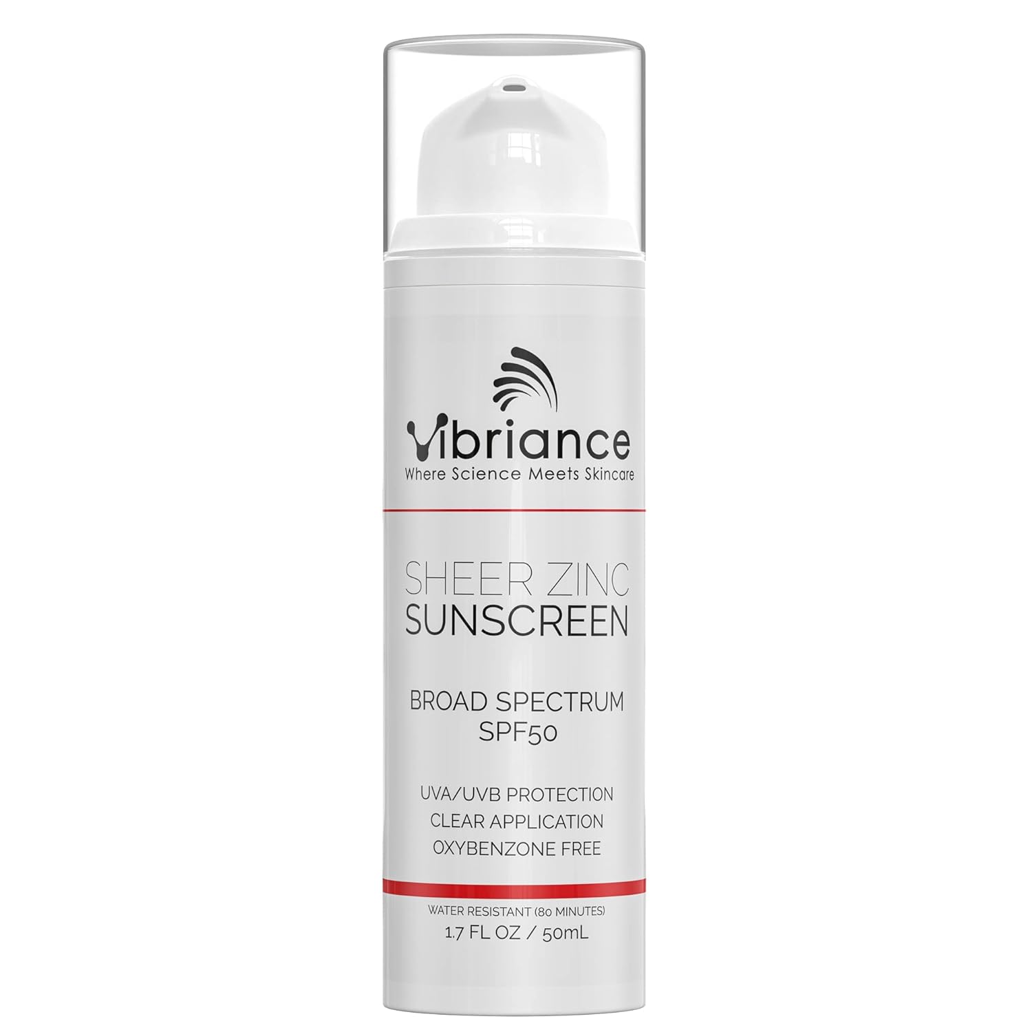 Vibriance Sheer Zinc Face Sunscreen Spf 50 - Sensitive Skin Friendly, Skin Rejuvenation, Clear Zinc Oxide Sunscreen, Face & Neck, Broad Spectrum - 1.7 Fl Oz (50 Ml)