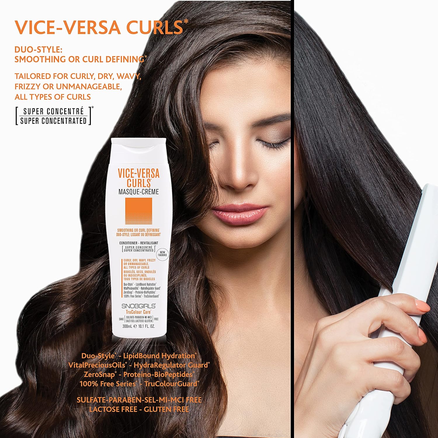 Vice-Versa Curls Masque-Crème (Curly Hair Conditioner) Duo-Style: Smoothing Or Curl Defining For Curly, Dry, Wavy, Frizzy, Unmanageable Hair, All Types Of Curls, Phyto-Vegan, New Fragrance