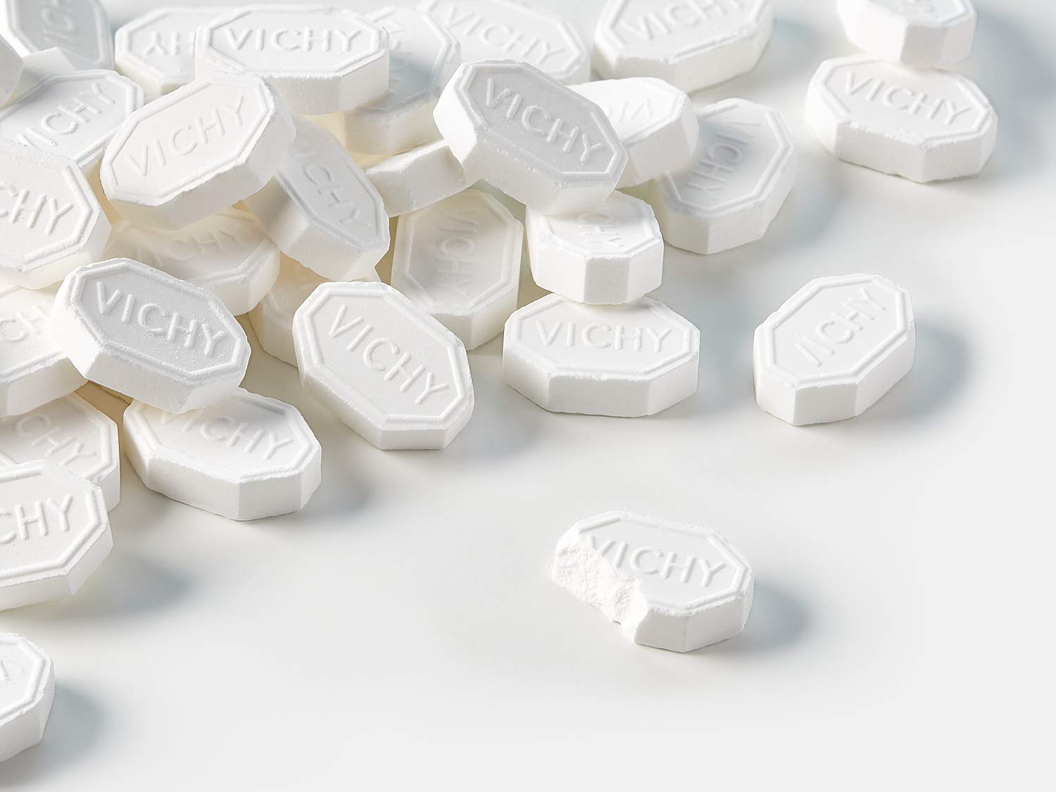 Pastille - Mint Scent. Description Discover Vichy mint lozenges, the real and unique lozenge made from extracts from Vichy waters. For almost 200 years, the pastille has been made in the Vichy pastillery: 100% French production! Ingredients / Composition Ingredients Ingredients: Sugar, Coating agent (Magnesium salts of fatty acids), Vichy water extracts (0.3%), Flavor, Glucose syrup