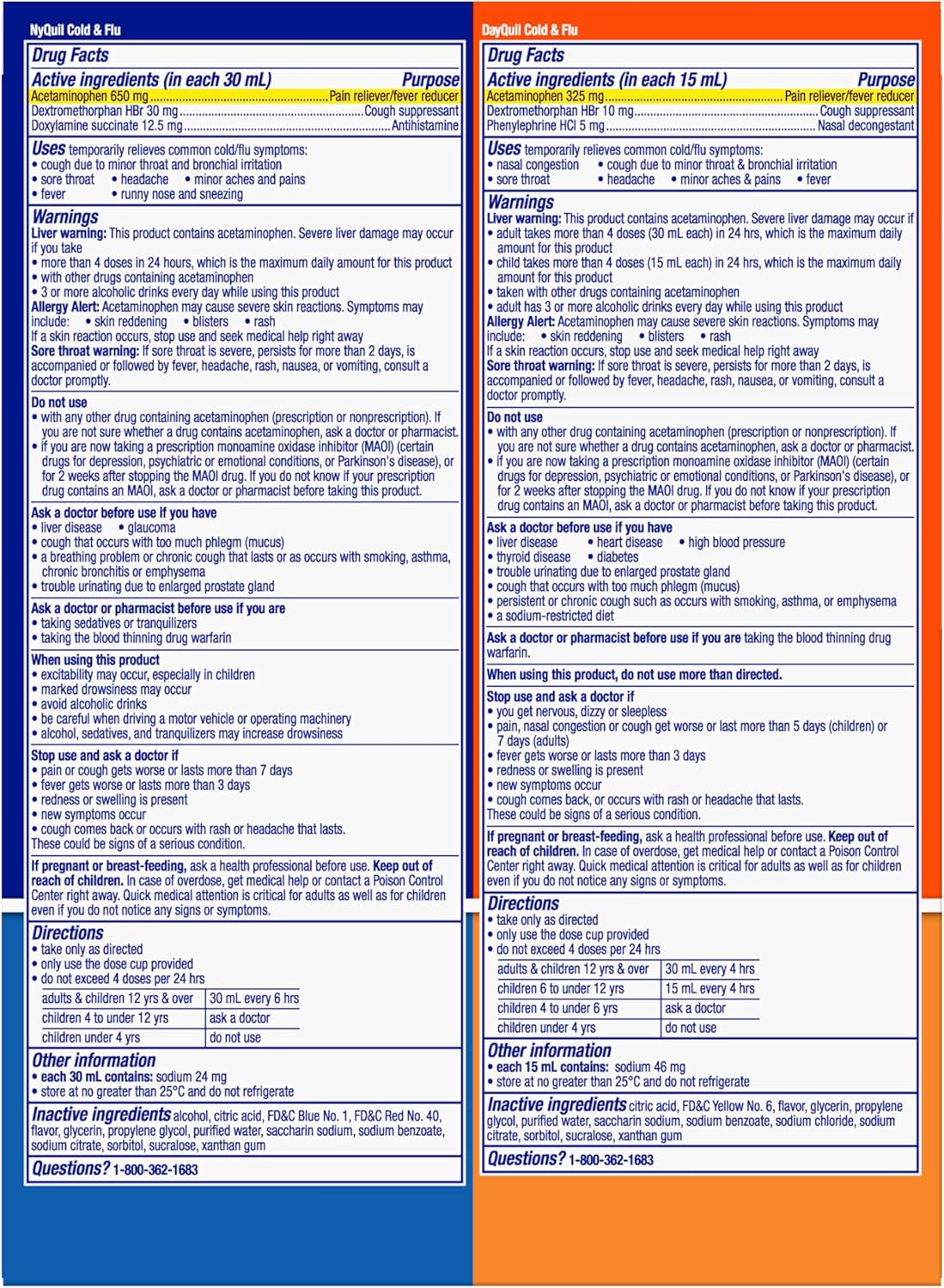 EFFECTIVE COLD & FLU SYMPTOM RELIEF. DayQuil and NyQuil Cold & Flu medicine temporarily relieve common cold & flu symptoms