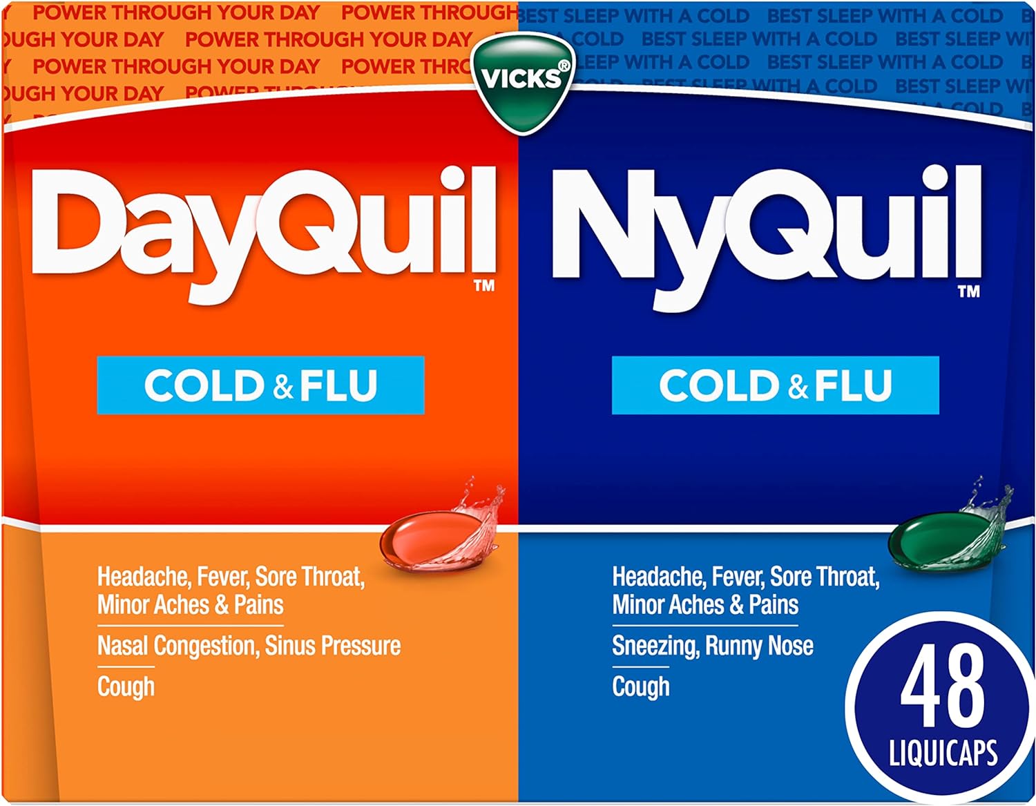 Vicks Dayquil And Nyquil Combo Pack, Cold & Flu Medicine, Powerful Multi-Symptom Daytime And Nighttime Relief For Headache, Fever, Sore Throat, Cough, 48 Count, 32 Dayquil And 16 Nyquil Liquicaps