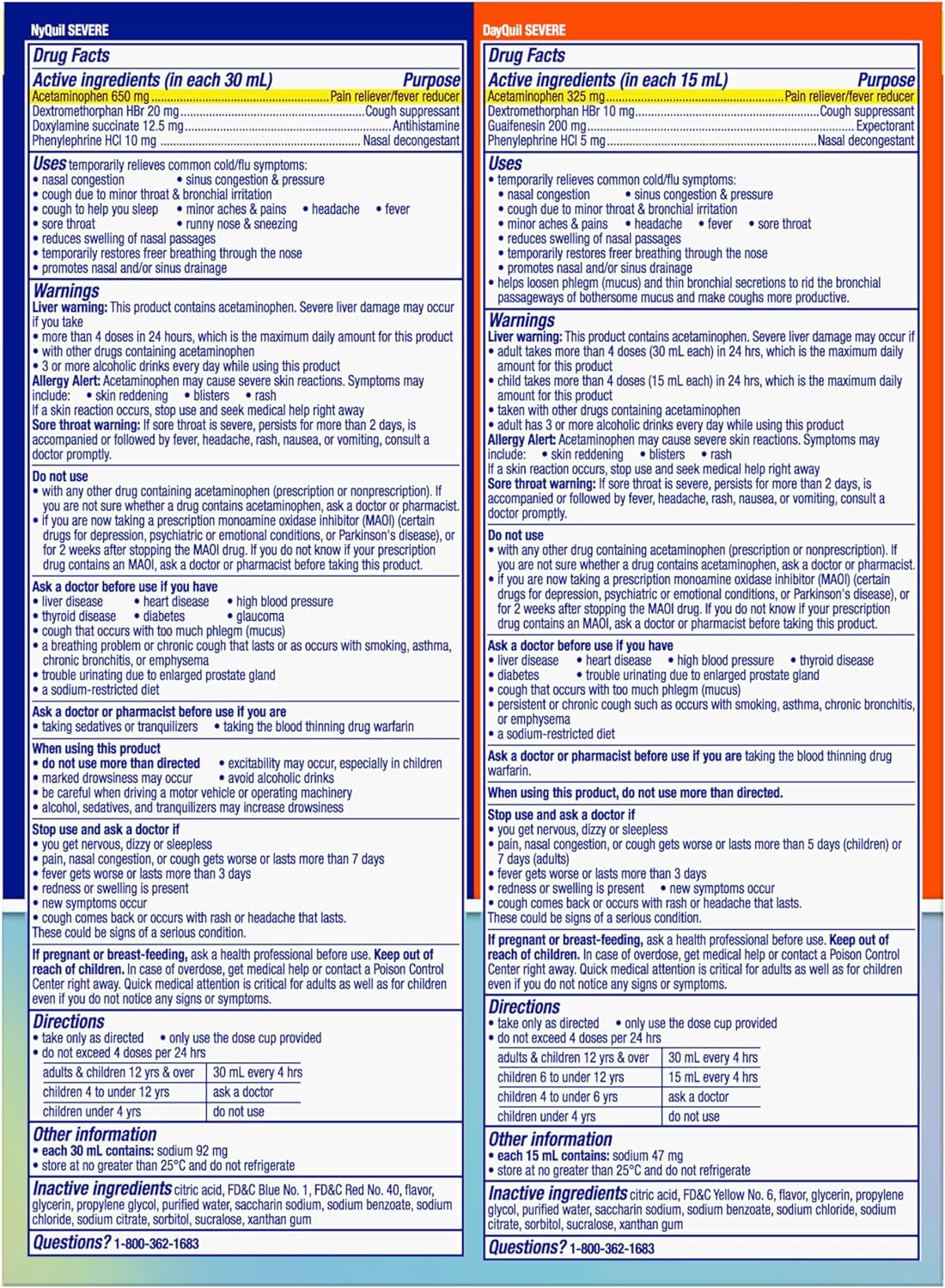 When A Cold Comes On Strong, Knock It Out With Vicks Dayquil And Nyquil Severe Cold & Flu Liquid Medicine. Just One Dose Starts Working Fast To Relieve Your Worst Cold And Flu Symptoms. From The World'S #1 Selling Otc Cough And Cold Brandā , Vicks Dayquil And Nyquil Severe Provide Fast, Powerful Strength Relief For Your Worst Cold And Flu Symptoms. With This Dayquil And Nyquil Severe Liquid Combo Pack, You'Ll Have The Cold And Flu Multi-Symptom Relief You Need On Hand, Day Or Night. Try Vicks Dayquil Severe For Fast, Non-Drowsy Daytime Relief And Use Vicks Nyquil Severe When You Need Nighttime Relief For Your Ugliest, Roughest, Toughest Cold Symptoms So You Can Get The Rest You Need. Vicks Dayquil Severe Provides Multi-Symptom Relief To Treat Coughing, Stuffy Nose, Minor Aches, Chest Congestion, Sinus Congestion, Sinus Pressure, Sore Throat, Headache, And Fever. Vicks Nyquil Severe Provides Multi-Symptom Relief To Treat Coughing, Stuffy Nose, Minor Aches, Sneezing, Sinus Congestion, Sinus Pressure, Sore Throat, Headache, And Fever. Vicks Has Been Trusted For Over 125 Years To Relieve Your Cold And Flu Symptoms. When You Need Fast, Powerful Cold And Flu Relief, Turn To Vicks Dayquil And Nyquil