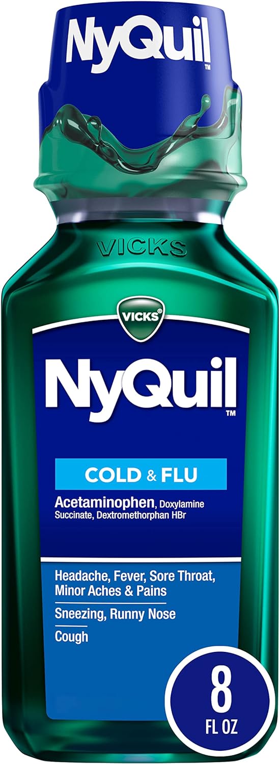 Effective Nighttime Cold & Flu Symptom Relief. Nyquil Cold & Flu Liquid Medicine Temporarily Relieves Common Cold & Flu Symptoms So You Can Get The Rest You Need