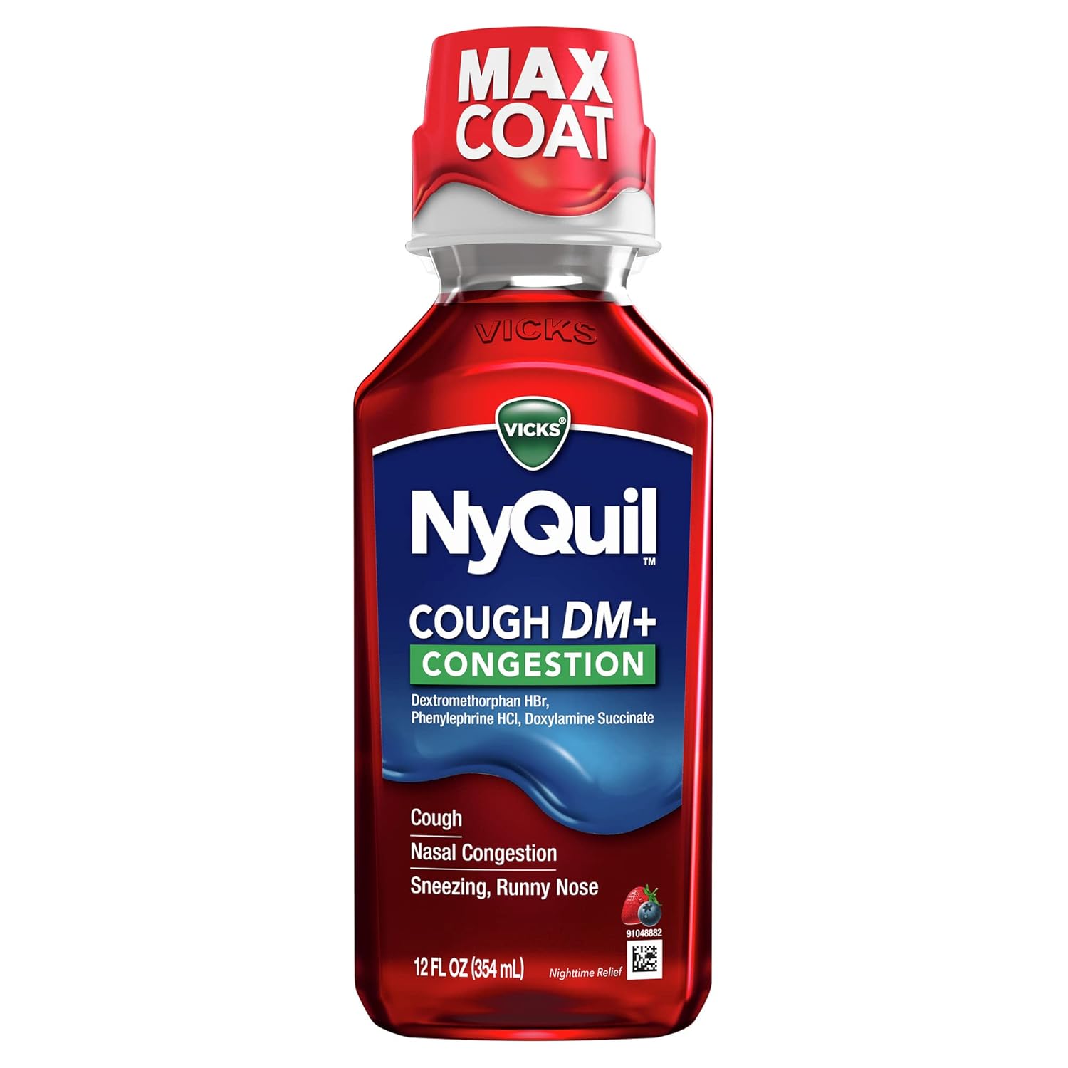 POWERFUL COUGH RELIEF SO YOU CAN SLEEP. Don’t let your cough keep you up. NyQuil Cough DM + Congestion fights your worst cough and congestion so you can rest