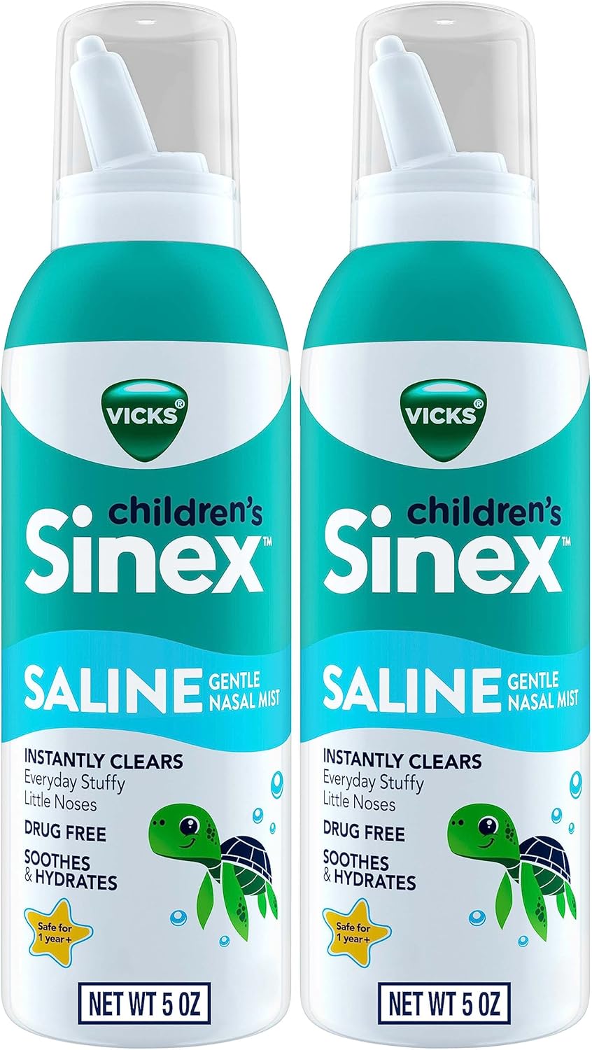 Relief You Can Trust From Vicks, The World’S #1 Selling Cough And Cold Brand! Trusted By Families For Over 125 Years! Vicks Sinex, The Brand Your Nose Knows And Loves, Now Carries A Drug-Free Saline Spray Safe For Kids Aged 12 Months And Older! Instantly Clear Everyday Congestion With Vicks Sinex Children'S Saline Nasal Mist Saline Spray. Helps Clear Nasal Congestion By Washing Dust, Allergens, Irritants, And Mucus From The Nose. Plus It Instantly Moisturizes Dry Nostrils Or Nasal Passages! Safe And Gentle On Kids Because It Is Drug-Free With No Added Preservatives. It Is Simply A Moisturizing Isotonic Saline Solution Made With Purified Water And A Hint Of Aloe. Its Special Ultra Fine Mist Spray Is Designed To Deliver Gentle Yet Effective Relief! Can Be Used Daily, As Often As Needed, To Treat Sinus Congestion Caused By A Cold Or Seasonal Allergy Spell. Vicks Sinex Saline Is Safe To Use With Otc Or Prescription Medicines. For Children And Adults Age 1 Or Older (With Adult Supervision): Spray In Each Nostril And Blow Your Nose (Or Aspirate) As Needed To Instantly Clear Your Child'S Everyday Congestion