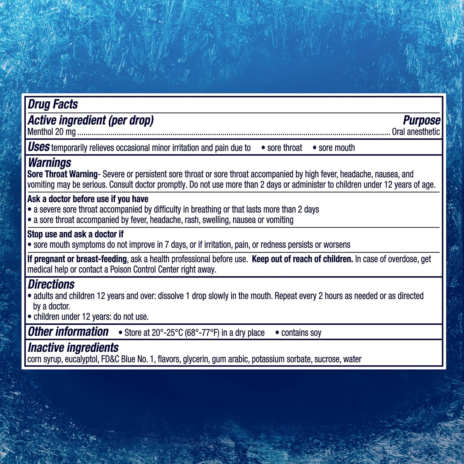 FAST SORE THROAT RELIEF THAT STARTS WORKING IN SECONDS: Simply let the Vicks VapoCOOL drop dissolve in your mouth for a powerful rush of Vicks VaporsMAXIMUM STRENGTH RELIEF. Vicks VapoCOOL SEVERE combines the cherry flavor, with a powerful rush of trusted Vicks VaporsVAPORIZE SORE THROAT PAIN: When you need something powerful that will knock out the pain right where you need itIT'S NOT CANDY…IT'S POWERFUL RELIEF. Each drop contains 20mg menthol to soothe sore throatsDELIGHTFUL CHERRY FREEZE FLAVOR. Enjoy the cool cherry freeze flavor. For more sore throat relief, also try Vicks VapoCOOL Sore Throat SprayVicks VapoCOOL SEVERE Cherry Freeze Medicated Drops start working in seconds to deliver a powerful rush of Vicks Vapors and soothe your worst sore throat pain. From the makers of Vicks, the world's #1 selling cough, cold, and flu brand. For over 85 years, Vicks has been a trusted choice for drops to tackle sore throats. Each cherry freeze drop will start working in seconds to deliver powerful sore throat relief. Specially formulated with menthol, a powerful oral anesthetic, you can vaporize your sore throat pain. For maximum strength relief, Vicks VapoCOOL SEVERE combines the cherry flavor with the effectiveness of a max strength sore throat drop. It's not candy, it's powerful relief. To use, dissolve one drop slowly in the mouth. Repeat every 2 hours as needed or as directed by a doctor. VapoCOOL SEVERE Drops are intended for use by adults and children 12 years of age or older. Should not be used by children under 12 years of age.Vicks has your sore throat covered! Also try Vicks VapoCOOL Sore Throat Spray - available in Cherry Berry flavor