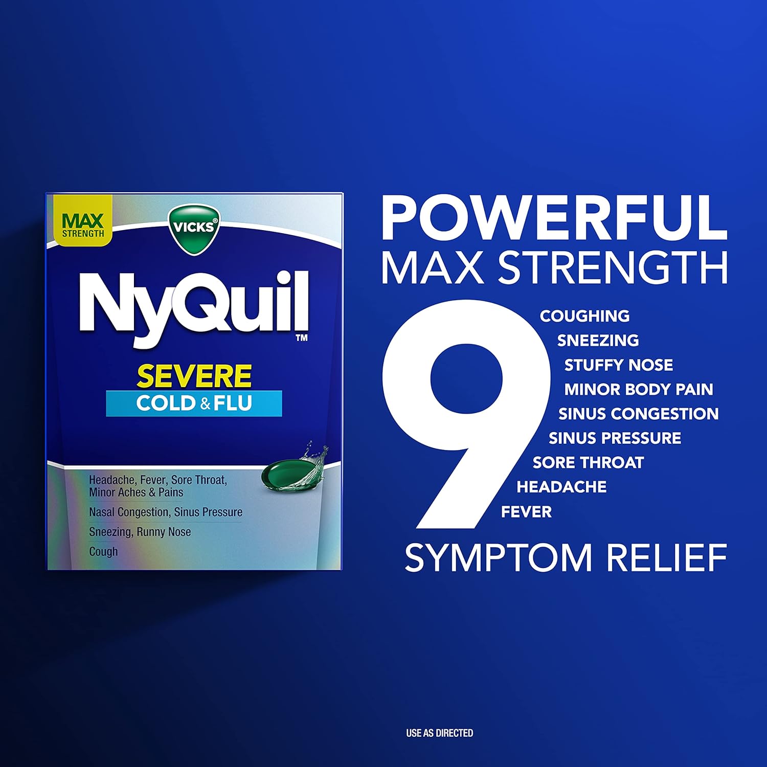 MULTI-SYMPTOM RELIEF from the World's 1 Selling Cough & Cold Brand. Vicks NyQui is the nighttime, sniffling, sneezing, coughing, aching, stuffy head, fever, BEST SLEEP WITH A COLD, medicine. Vicks DayQuil is the daytime, coughing, sneezing, aching, stuffy head, fever, sore throat, congested chest, POWER THROUGH YOUR DAY, medicine