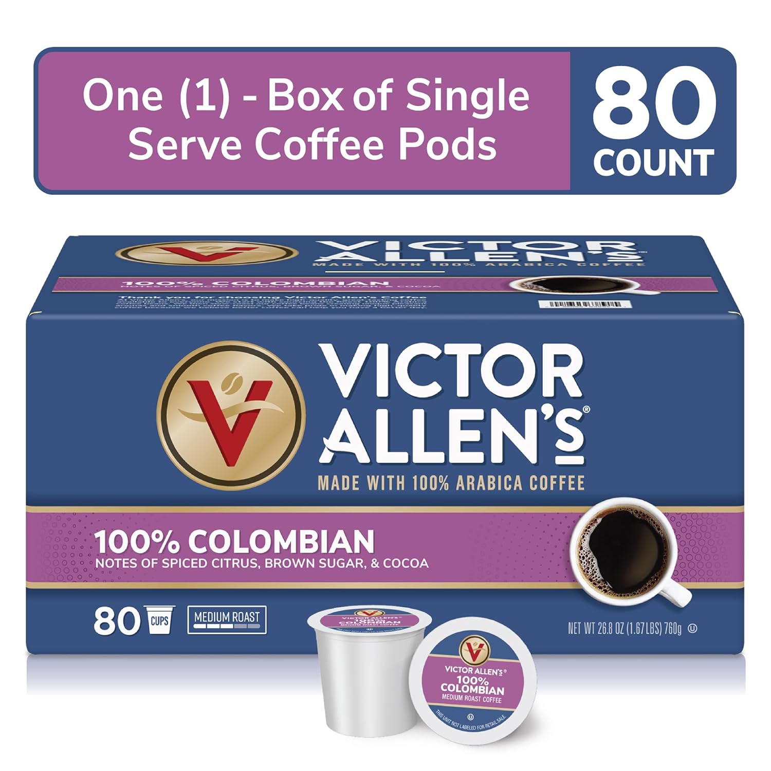 Victor Allen'S Coffee 100% Colombian, Medium Roast, 80 Count, Single Serve Coffee Pods For Keurig K-Cup Brewers