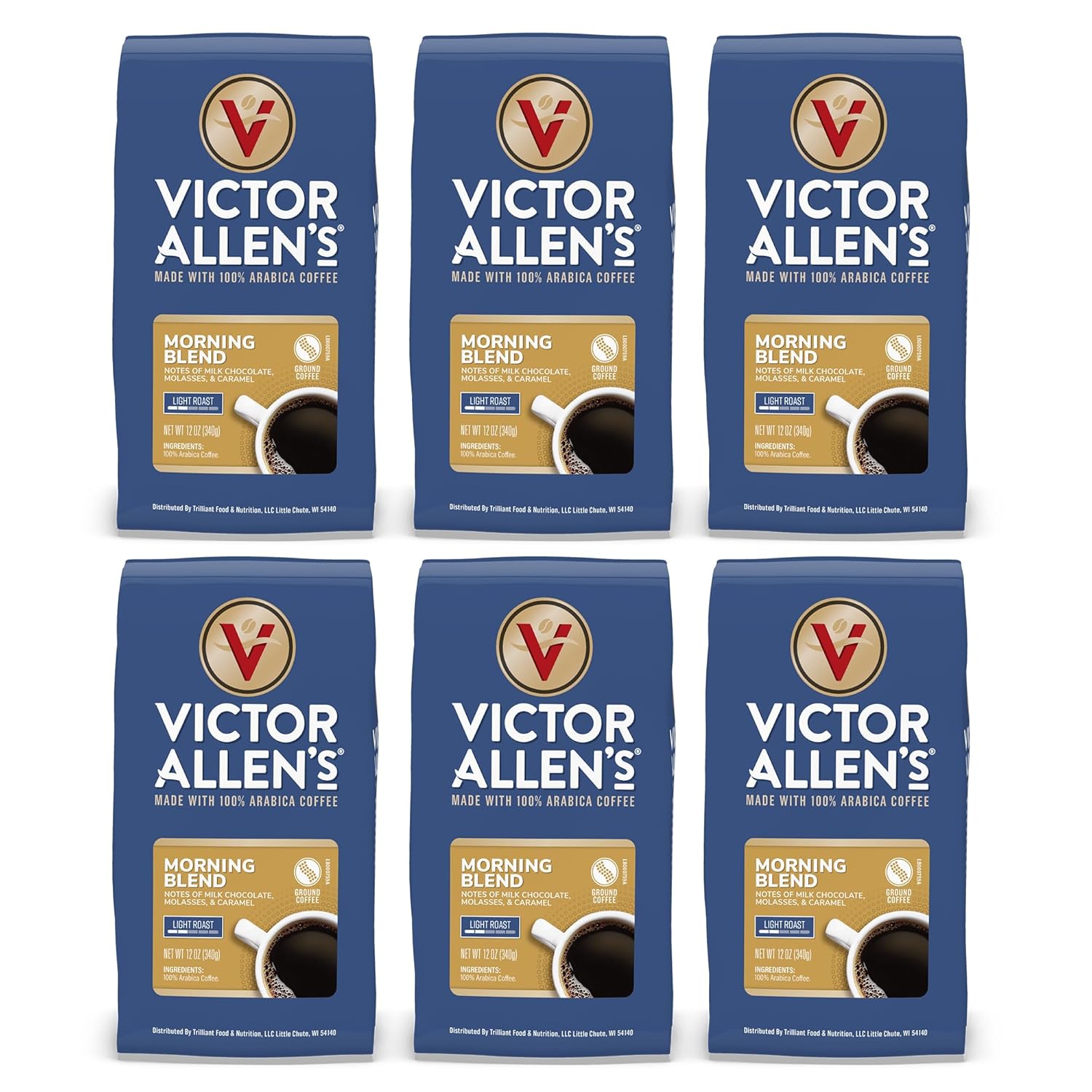 Victor Allen'S Coffee Morning Blend Light Roast, Ground Coffee, 6 Pack - 12Oz Bags