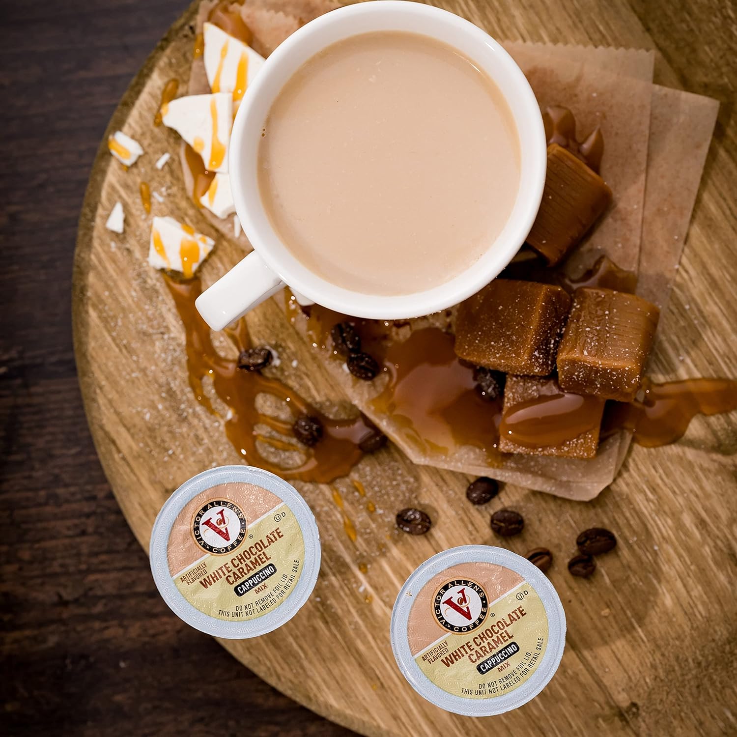 Victor Allen'S Coffee White Chocolate Caramel Flavored Cappuccino Mix, 42 Count, Single Serve Cups For Keurig K-Cup Brewers, Packaging May Vary