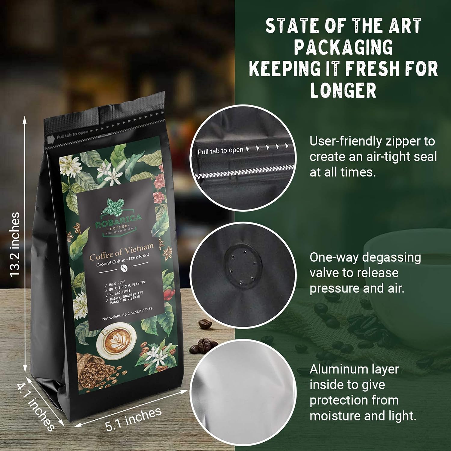 Vietnamese Coffee Drip Ground Robusta Arabica Blend for Strong Coffee French Press, Espresso Coffee Ground, High Caffeine Coffee