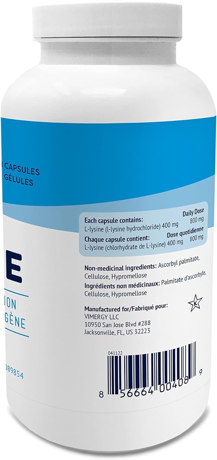 Vimergy L-Lysine 500Mg Capsules, 270 Servings – Essential Amino Acid – Supports Immune System, Healthy Skin, Muscles, Bone & Tissue – Vegetarian, Non-Gmo, No Gluten, Kosher (270 Count)