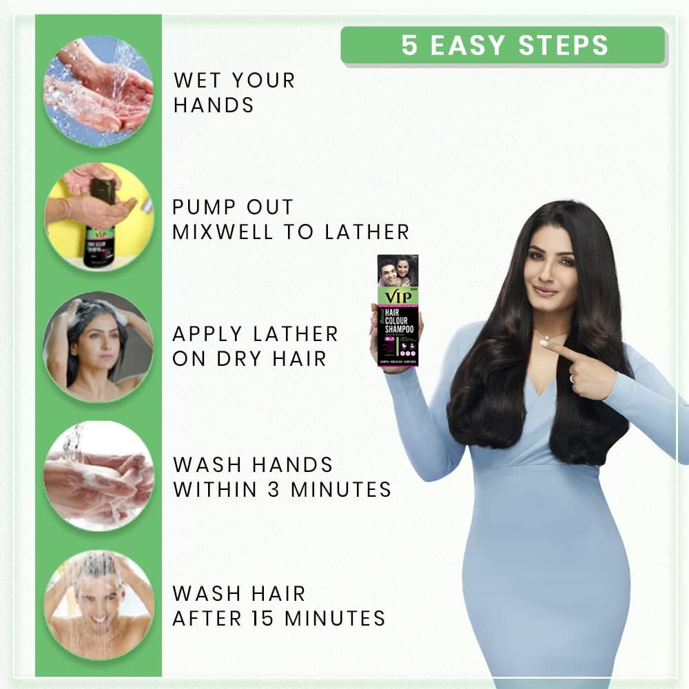 About The Product : VIP 5 in 1 Hair Color Shampoo Base Hair Color Black (180 ml)
