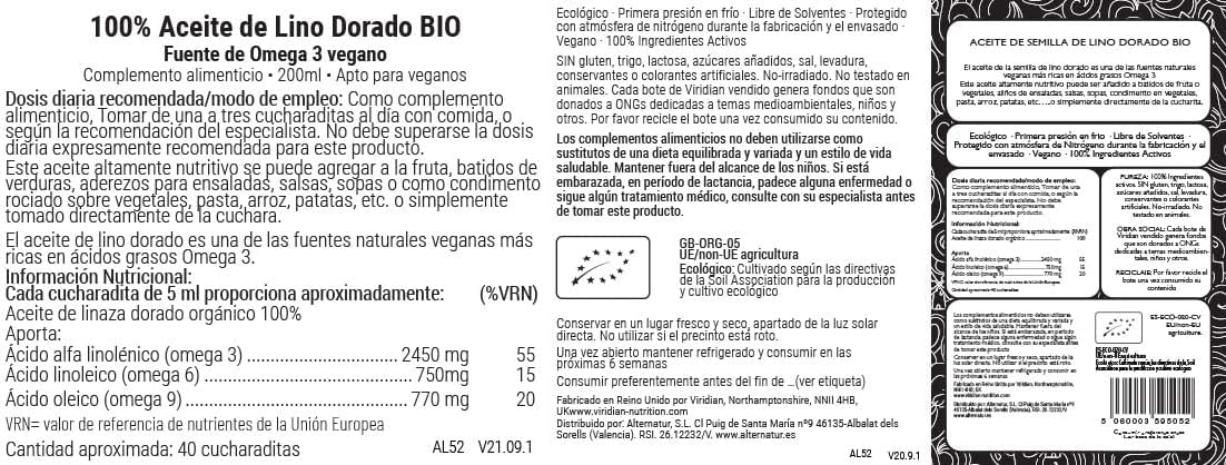 About The Product : 100% Organic Golden Flax Seed Oil 200ml Oil rich in Omega 3 fatty acids. A vegetarian alternative fish oils