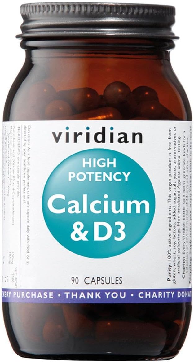 Product description A combination of calcium and vitamin D3 in a unique capsule format. One capsule provides 400mg of calcium in three active forms; as calcium hydroxide from Lithothamnion sp, as calcium citrate and as calcium ascorbate alongside 200mcg vegan vitamin D3 from Ingredients Calcium (as hydroxide from Lithothamnion sp, citrate, ascorbate), Vitamin D3 (vegan cholecalciferol), Vegan capsule,Viridian High Potency Calcium & Vitamin D3-90 Capsules,Product type: NUTRITIONAL SUPPLEMENT,Brand: Viridian,Size: 90 count Pack of 1
