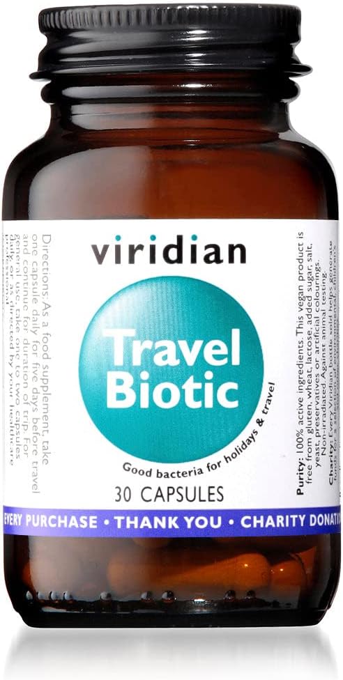 About this item DIGESTIVE HEALTH: Provides a professional-strength, one-a-day dose of the heat-resistant friendly yeast Saccharomyces boulardii, a well-established dietary supplement known for supporting digestive health, particularly during travel. CONVENIENT: No refrigeration required, making it the perfect companion for work trips, holidays, or overseas travel. Ideal for maintaining digestive balance while on the go. SUPPORTS COMFORT: Enhanced with ginger to help reduce discomfort, including nausea, dizziness, and vomiting often experienced during travel by plane or vehicle. ETHICAL & PURE: Free from artificial fillers and additives, this supplement is formulated using 100% active ingredients. Sourced ethically, with no GMOs, palm oil, or animal testing, ensuring a responsible and effective supplement. COMPLETE SATISFACTION: Like every Viridian supplement, Travel Biotic Capsules are fully considered from the seed to the recycling bank. Our customer service team and qualified nutritionists are based in Northamptonshire and available to support you. Our range is also stocked in independent health stores across the country. › See more product details,DIGESTIVE HEALTH: Provides a professional-strength, one-a-day dose of the heat-resistant friendly yeast Saccharomyces boulardii, a well-established dietary supplement known for supporting digestive health, particularly during travel,CONVENIENT: No refrigeration required, making it the perfect companion for work trips, holidays, or overseas travel. Ideal for maintaining digestive balance while on the go,SUPPORTS COMFORT: Enhanced with ginger to help reduce discomfort, including nausea, dizziness, and vomiting often experienced during travel by plane or vehicle,ETHICAL & PURE: Free from artificial fillers and additives, this supplement is formulated using 100% active ingredients. Sourced ethically, with no GMOs, palm oil, or animal testing, ensuring a responsible and effective supplement,COMPLETE SATISFACTION: Like every Viridian supplement, Travel Biotic Capsules are fully considered from the seed to the recycling bank. Our customer service team and qualified nutritionists are based in Northamptonshire and available to support you. Our range is also stocked in independent health stores across the country