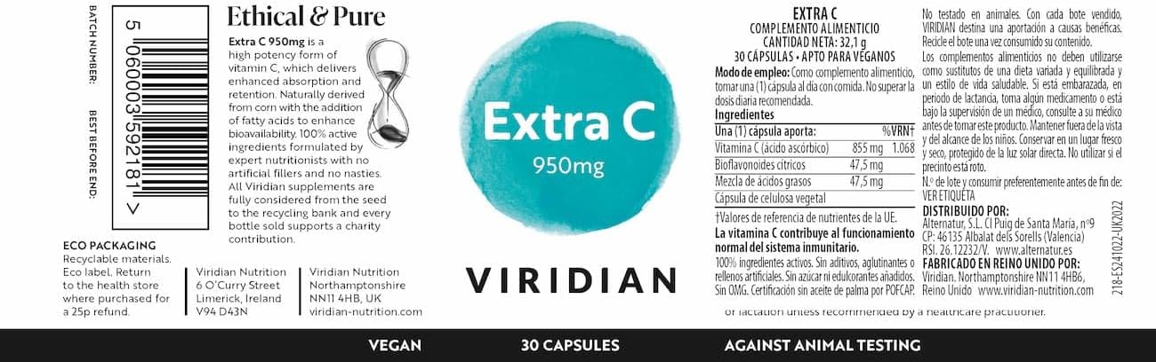 Viridian Viridian Extra C 950Mg (30) Veg. Caps. 600 G