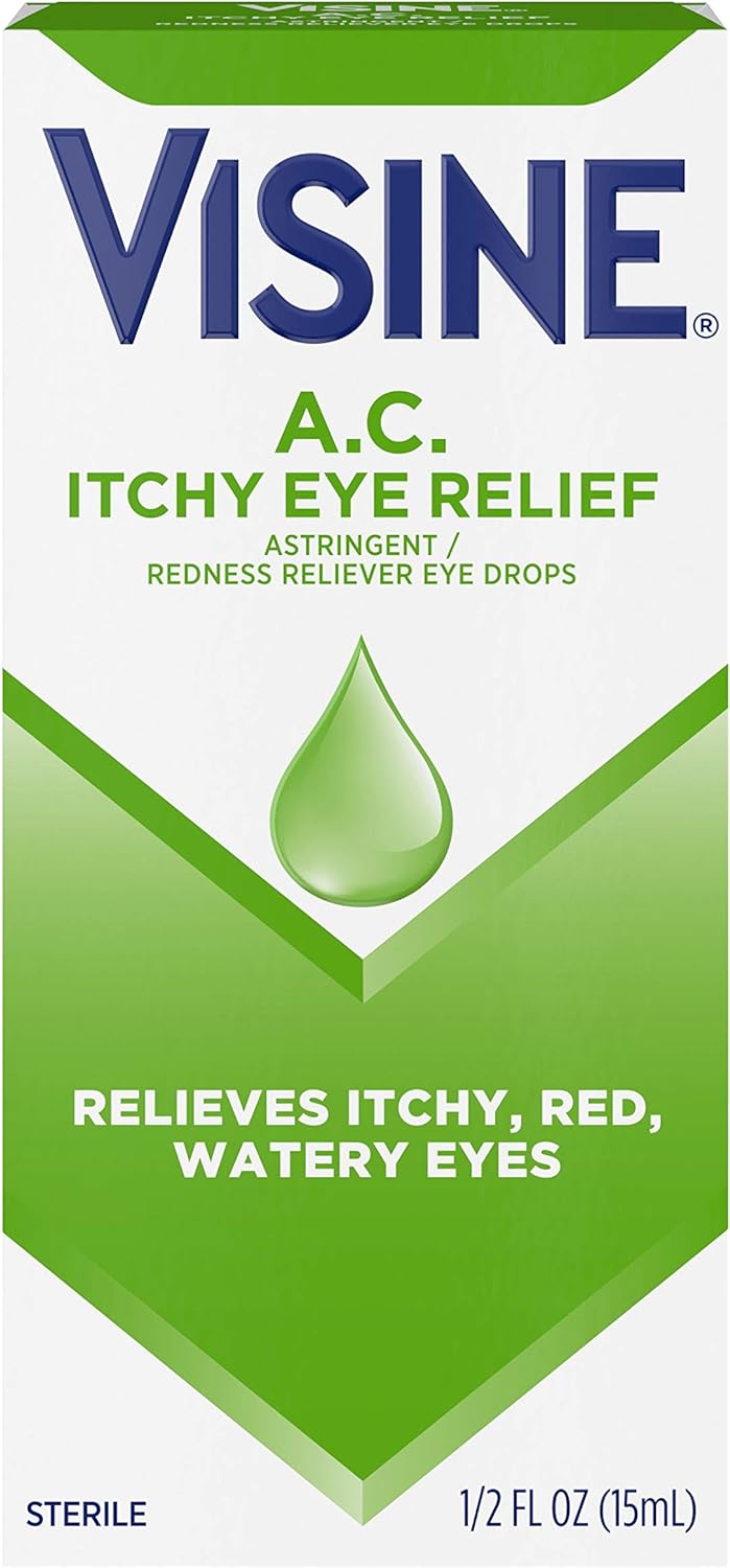 DESCRIPTION : Visine A.C. Itchy Eye Relief Eye Drops with Zinc Sulfate & Tetrahydrozoline HCl, Eye Drop Treatment with Redness Reliever & Astringent for Itchy, Red, Watery & Irritated Eyes, 0.5 fl. oz