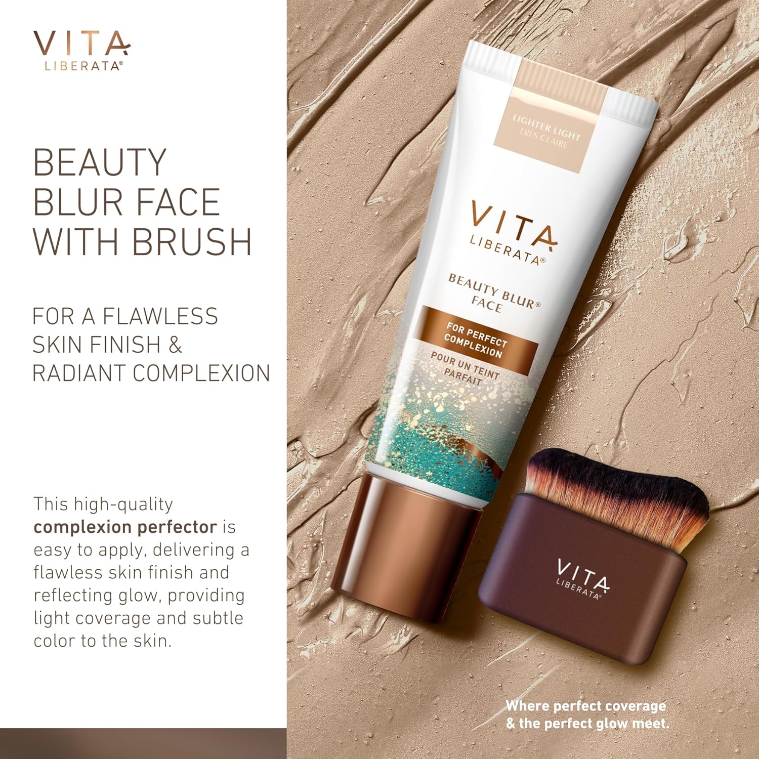 Vita Liberata Beauty Blur Lighter Light 30Ml & Brush Bundle, Bb/Cc Cream, Hydrating Complexion Booster, Radiant Glow & Flawless Finish, Colour Corrector, Flawless Application Blending Brush