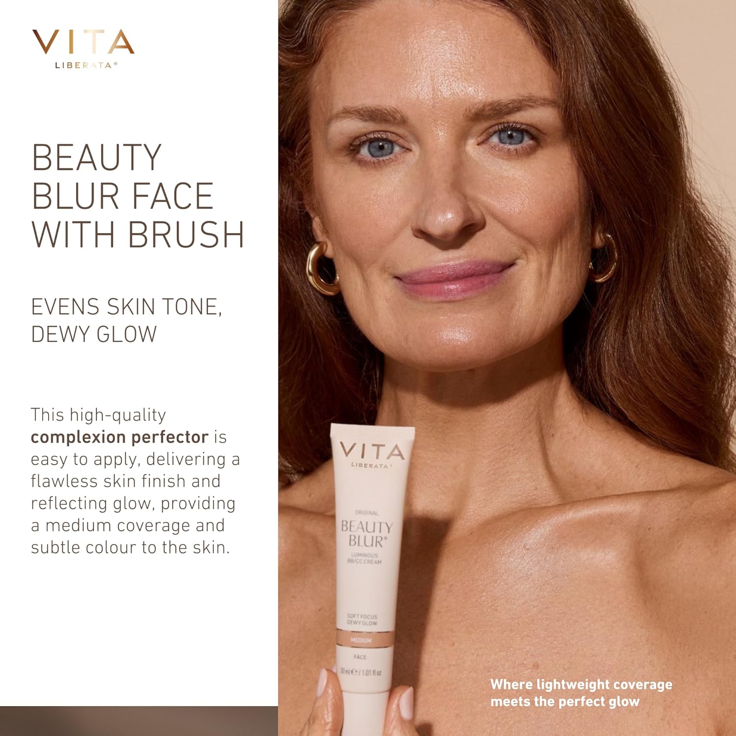 Vita Liberata Beauty Blur Medium 30Ml & Brush Bundle, Bb/Cc Cream, Hydrating Complexion Booster, Radiant Glow & Flawless Finish, Colour Corrector, Tinted Primer, Flawless Application Blending Brush