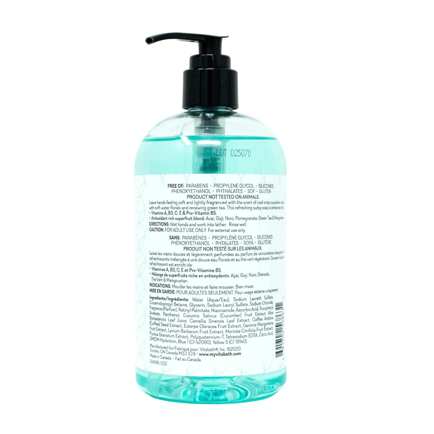 Vitabath Cucumber & White Tea Hand Soap Cleansing Moisturizing Wash For Hands With Nourishing Botanicals Aloe, Vitamins & Antioxidants - Cruelty-Free, Gluten-Free, Paraben-Free - 16 Oz
