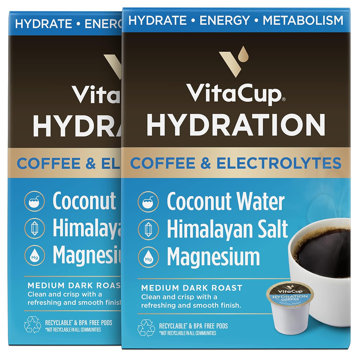 Vitacup Hydration Coffee Pods, The First Coffee That Hydrates You W/Electrolytes, Coconut Water, Pink Himalayan Salt, Magnesium, Medium Roast,Single Serve Pod Compatible W/Keurig K-Cup Brewers, 36Ct