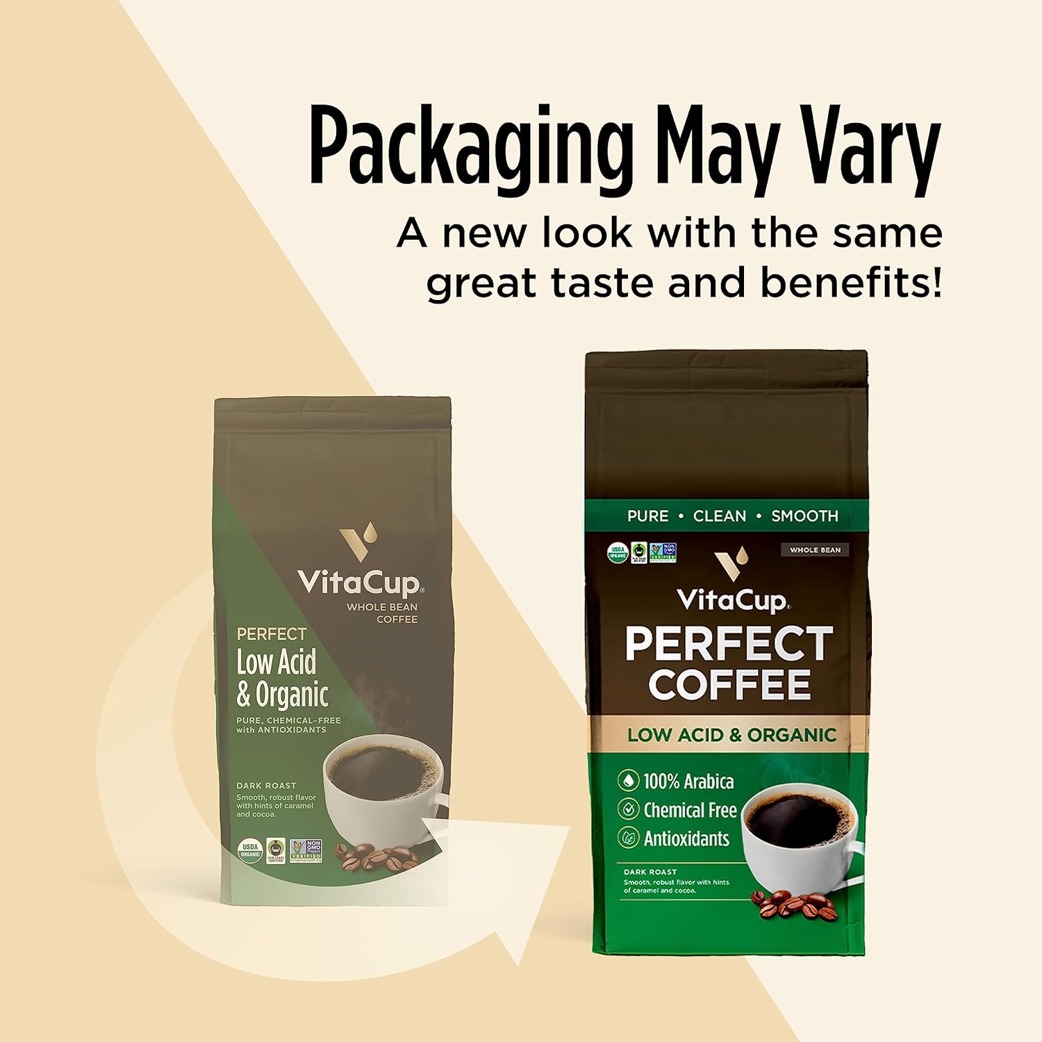 Vitacup Perfect Low Acid Coffee Beans, Usda Organic & Fair Trade, Mycotoxin Free, Dark Roast Guatemala Single Origin, Clean & Pure, Low Acidity, Whole Bean Coffee, 11 Ounces