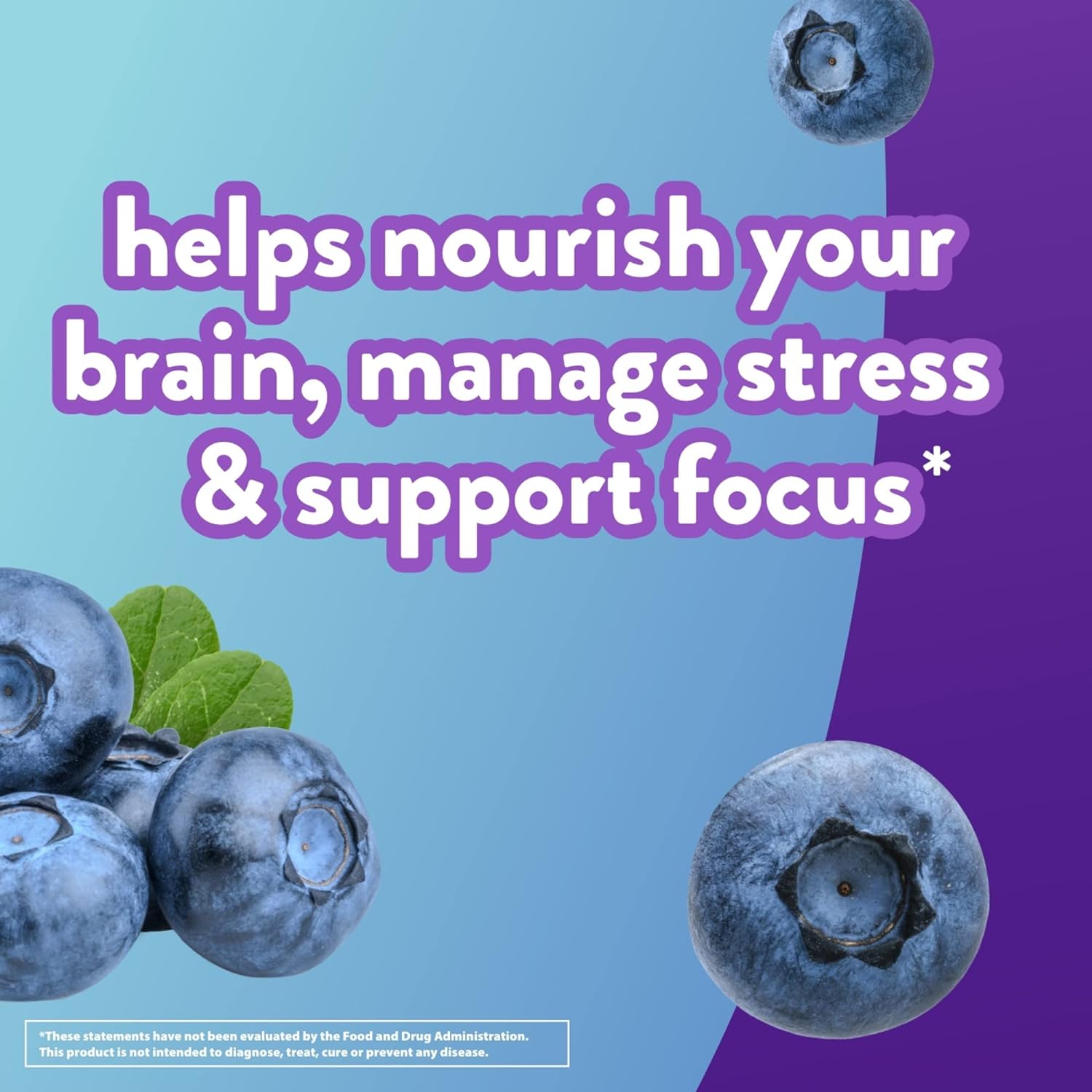 DESCRIPTION : Vitafusion Brain Food Gummy Supplement: 125mg Ashwagandha, 100mg Phosphatidylserine per Serving, B Vitamins, 50ct (25 Day Supply), Blueberry Flavor from America’s Number One Gummy Vitamin Brand