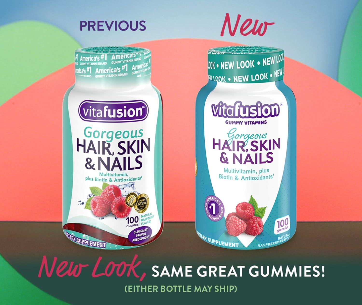 Vitafusion Gorgeous Hair, Skin Nails Multivitamin Gummy Vitamins, Plus Biotin And Antioxidant Vitamins Ce, Raspberry Flavor, 100Ct (33 Day Supply), From America’S Number One Gummy Vitamin Brand
